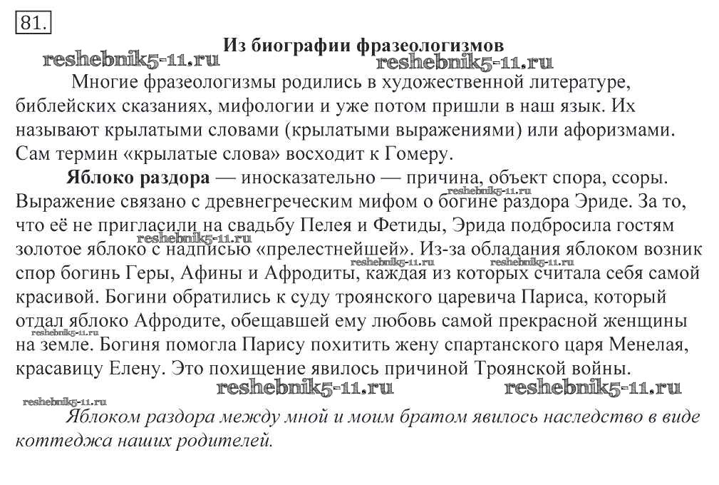 Готовая домашняя работа с ответами по Русскому языку за 10, 11 класс Греков, Крючков, Чешко Учебник Просвещение 2016 - Упражнения 81