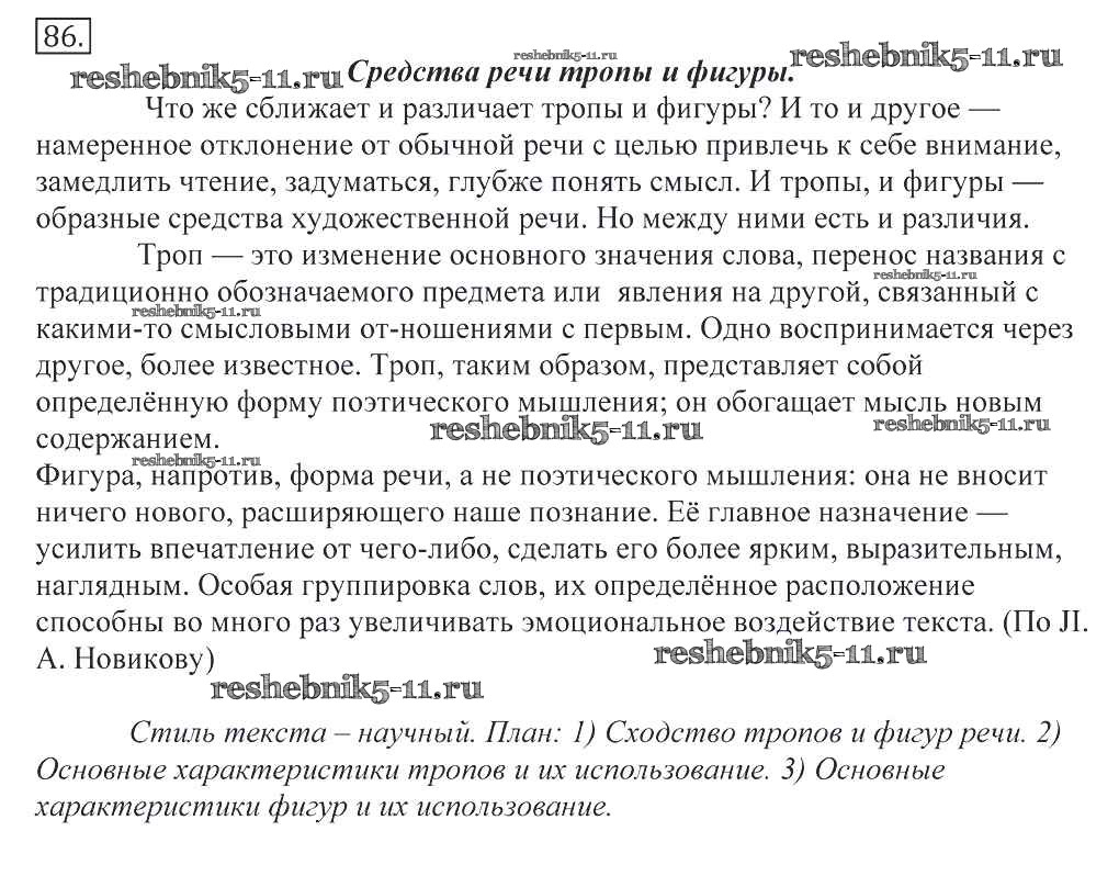Готовая домашняя работа с ответами по Русскому языку за 10, 11 класс Греков, Крючков, Чешко Учебник Просвещение 2016 - Упражнения 86