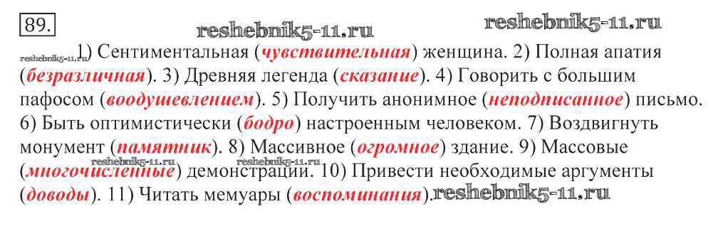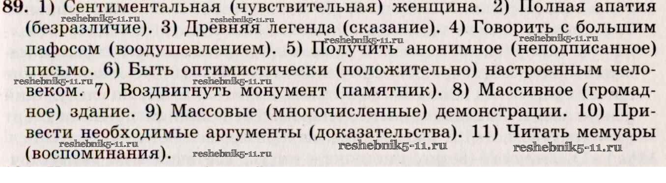 Готовая домашняя работа с ответами по Русскому языку за 10, 11 класс Греков, Крючков, Чешко Учебник Просвещение 2016 - Упражнения 89