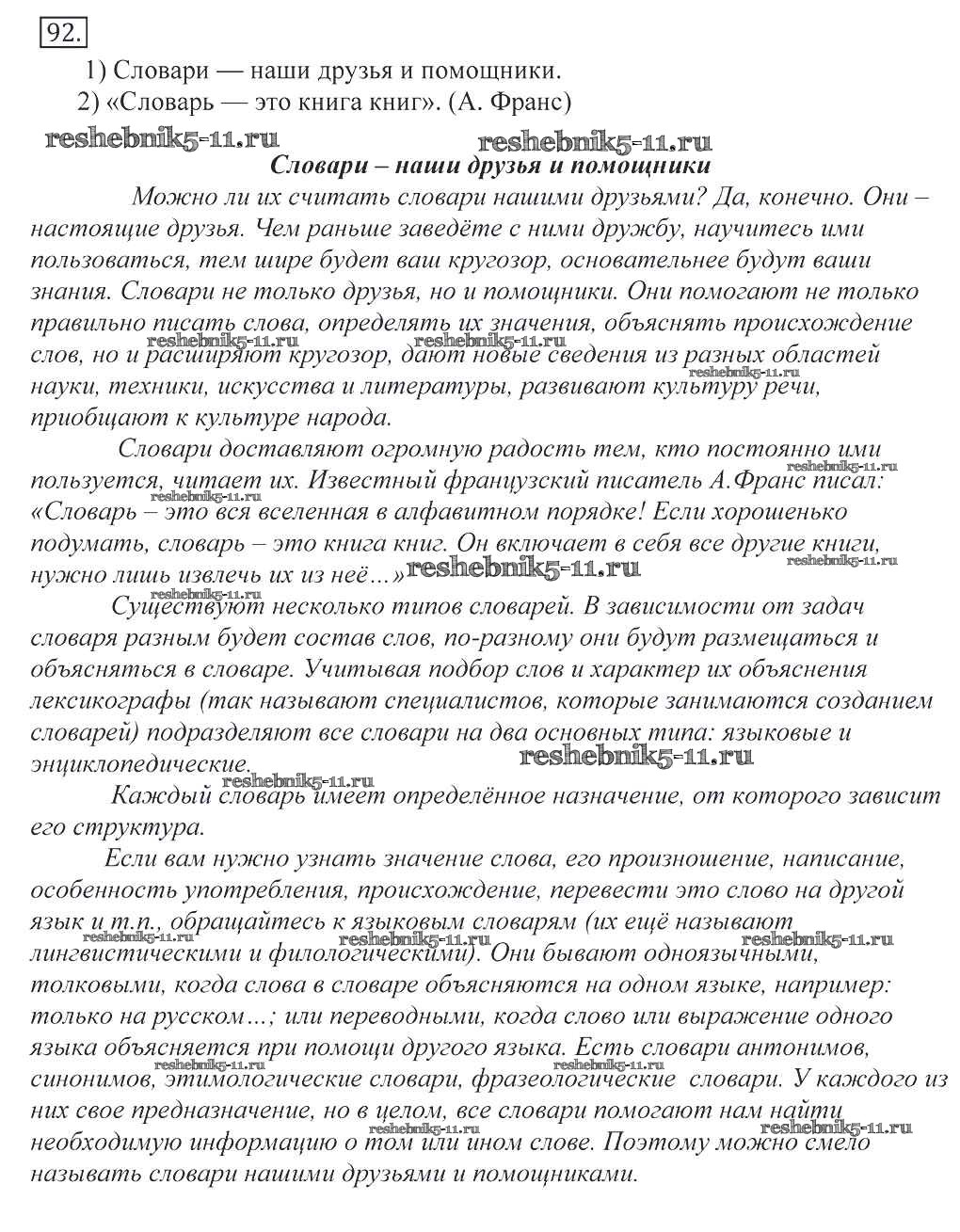 Готовая домашняя работа с ответами по Русскому языку за 10, 11 класс Греков, Крючков, Чешко Учебник Просвещение 2016 - Упражнения 92