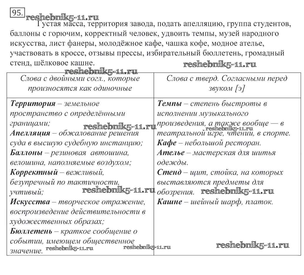 Готовая домашняя работа с ответами по Русскому языку за 10, 11 класс Греков, Крючков, Чешко Учебник Просвещение 2016 - Упражнения 95
