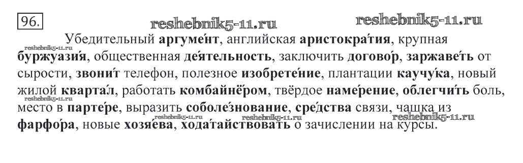 Готовая домашняя работа с ответами по Русскому языку за 10, 11 класс Греков, Крючков, Чешко Учебник Просвещение 2016 - Упражнения 96