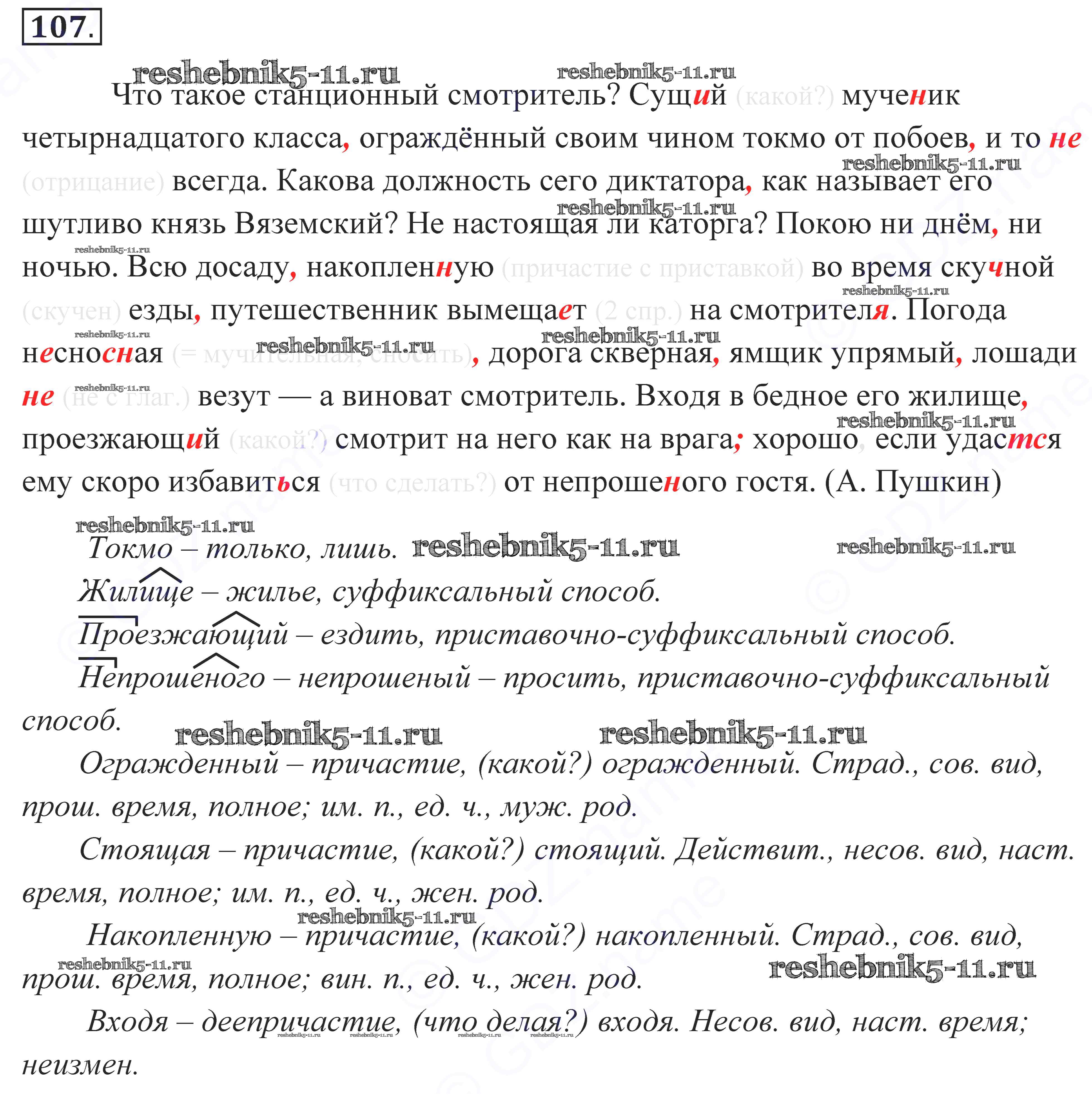 Готовая домашняя работа с ответами по Русскому языку за 10, 11 класс Власенков, Рыбченкова Учебник Базовый уровень Просвещение 2014 - Упражнения 107