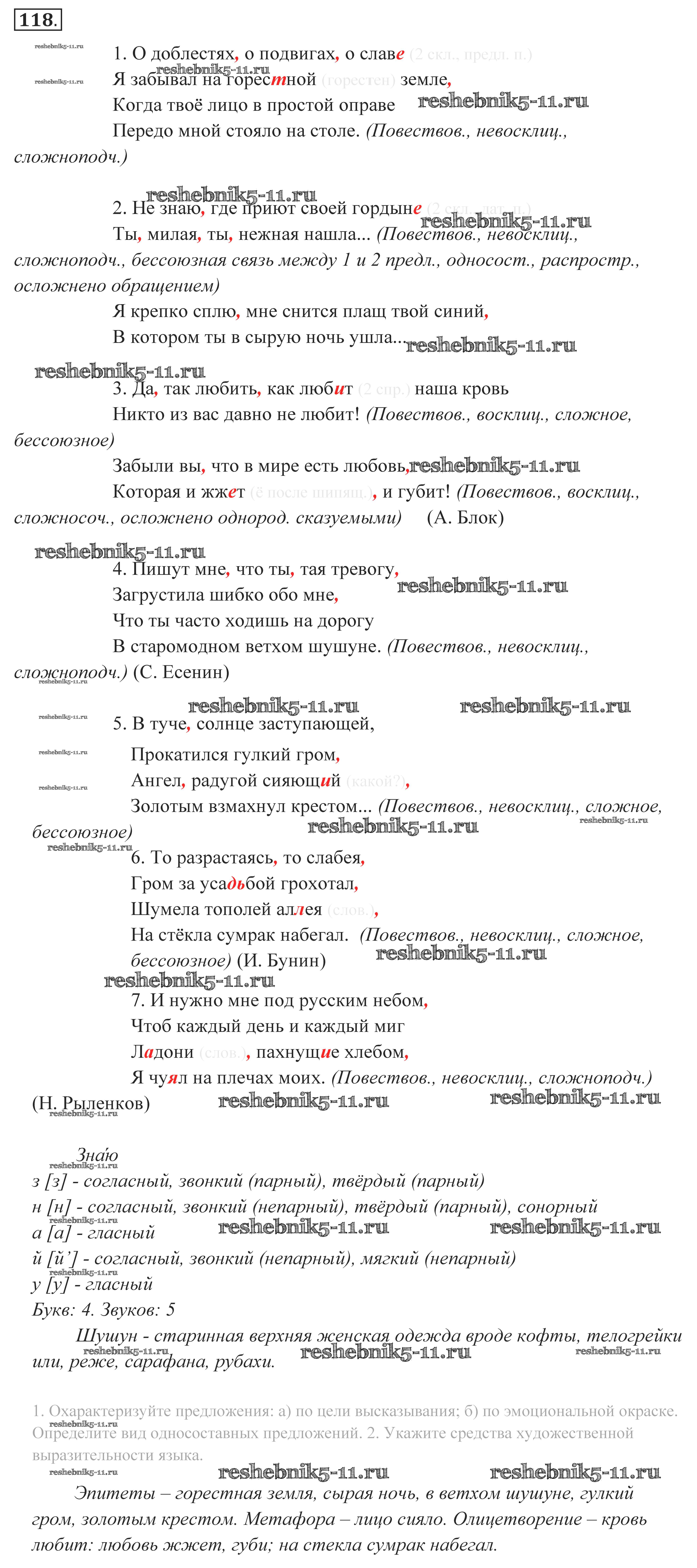 Готовая домашняя работа с ответами по Русскому языку за 10, 11 класс Власенков, Рыбченкова Учебник Базовый уровень Просвещение 2014 - Упражнения 118
