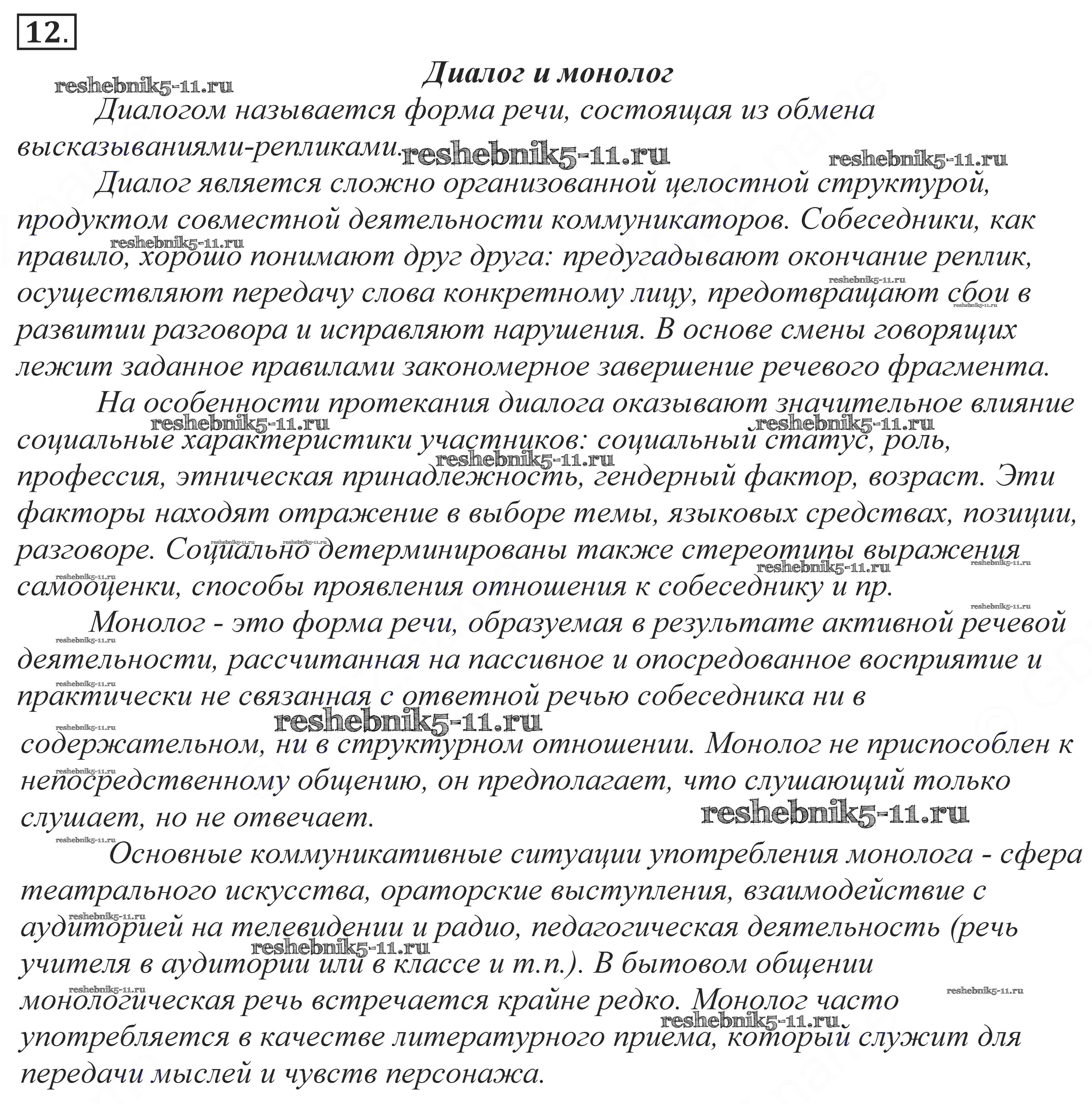 Готовая домашняя работа с ответами по Русскому языку за 10, 11 класс Власенков, Рыбченкова Учебник Базовый уровень Просвещение 2014 - Упражнения 12