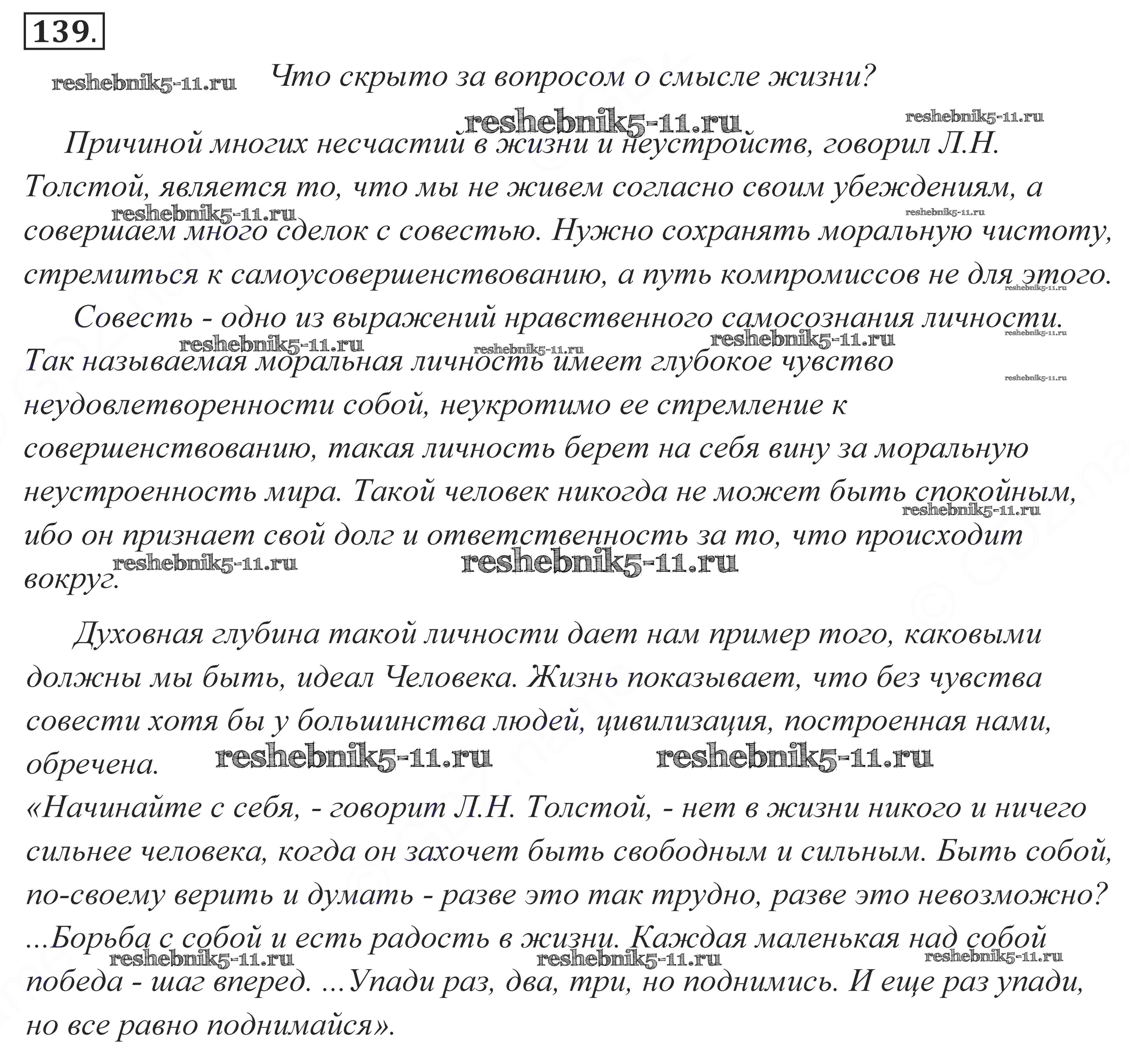 Готовая домашняя работа с ответами по Русскому языку за 10, 11 класс Власенков, Рыбченкова Учебник Базовый уровень Просвещение 2014 - Упражнения 139