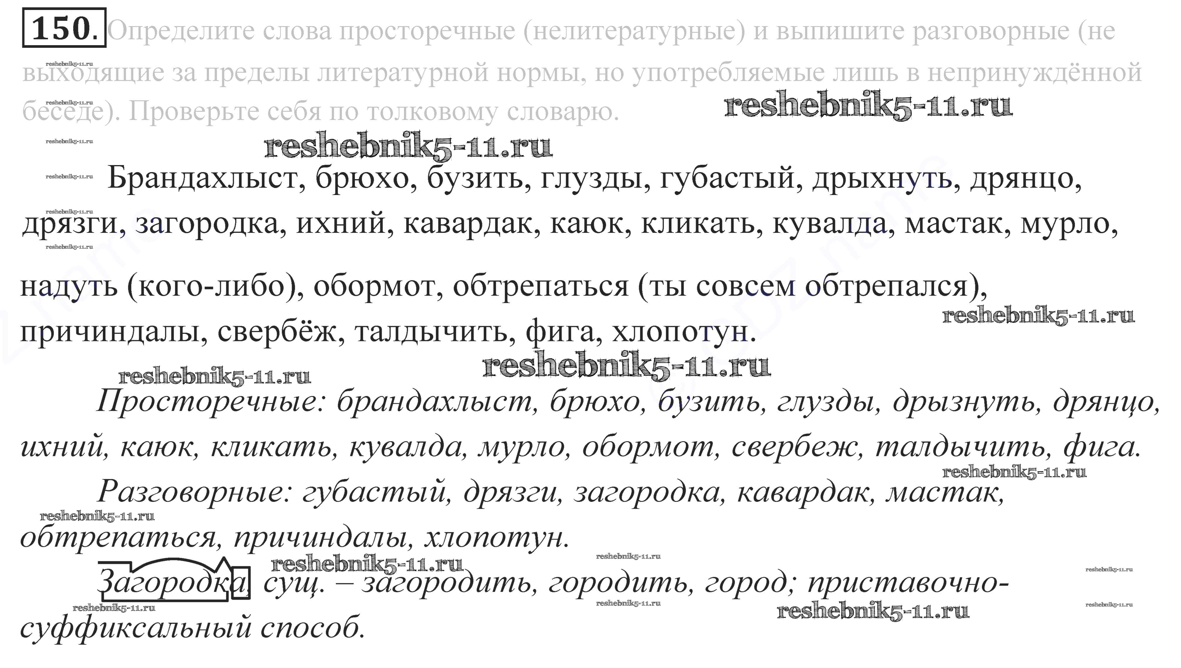 Готовая домашняя работа с ответами по Русскому языку за 10, 11 класс Власенков, Рыбченкова Учебник Базовый уровень Просвещение 2014 - Упражнения 150