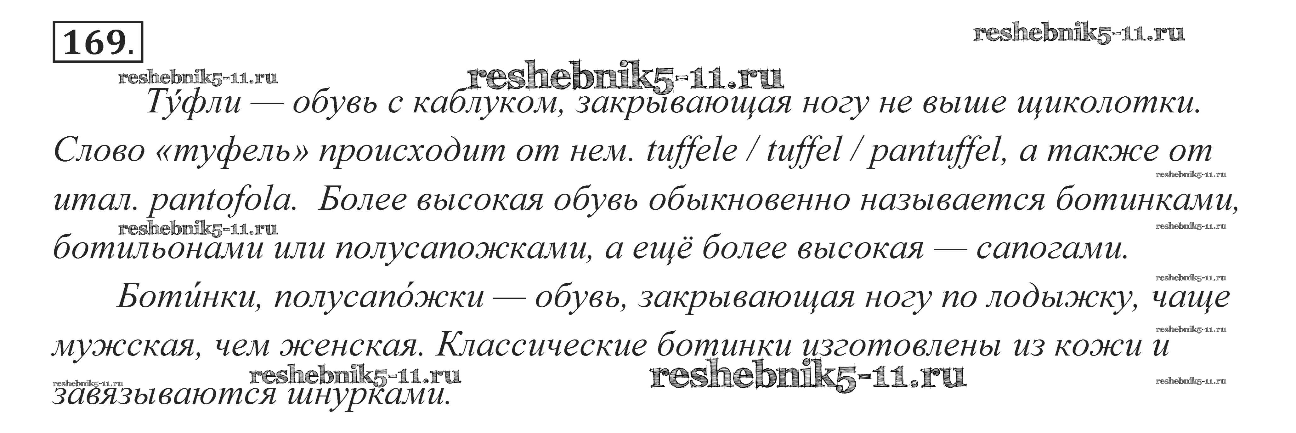 Готовая домашняя работа с ответами по Русскому языку за 10, 11 класс Власенков, Рыбченкова Учебник Базовый уровень Просвещение 2014 - Упражнения 169