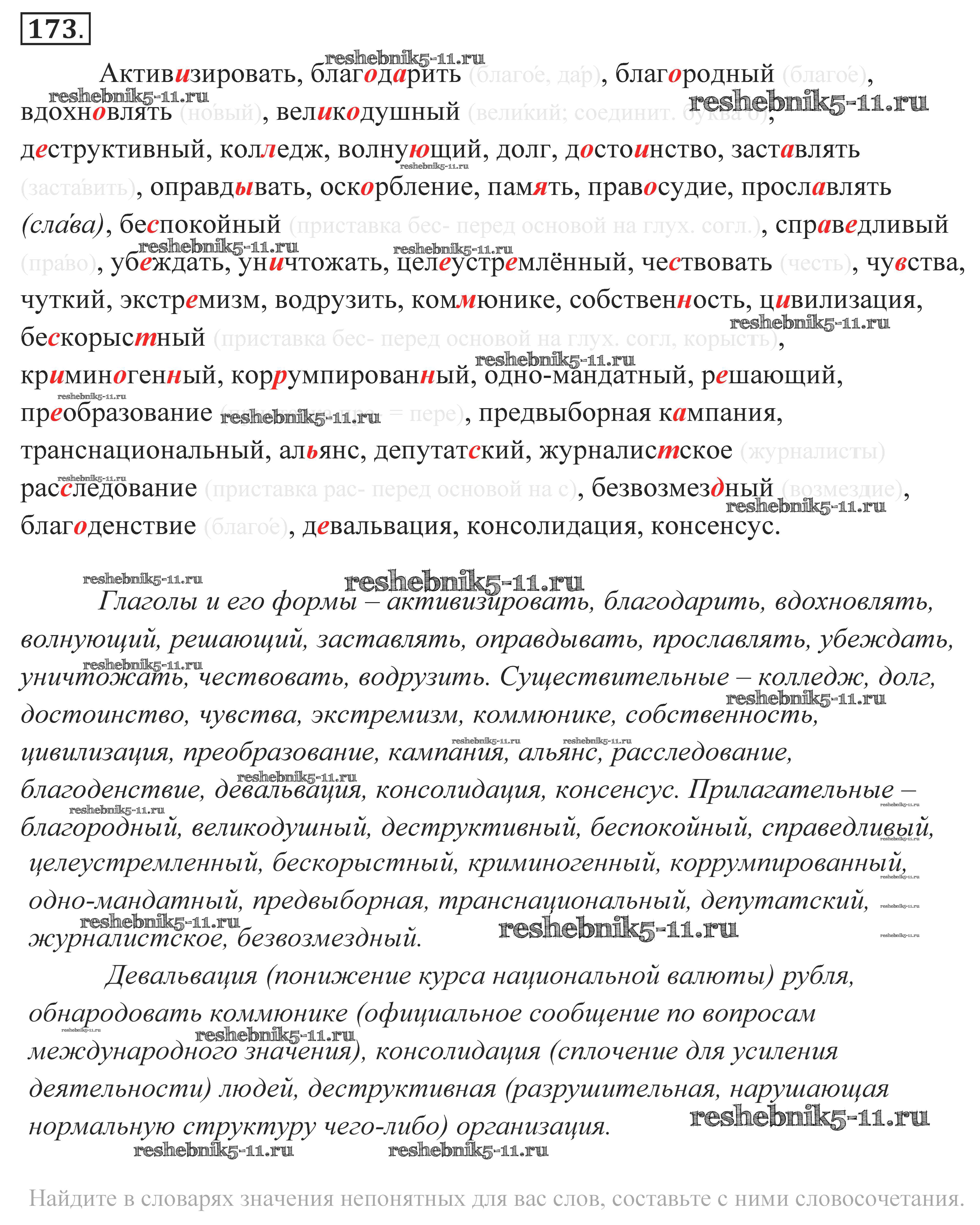 Готовая домашняя работа с ответами по Русскому языку за 10, 11 класс Власенков, Рыбченкова Учебник Базовый уровень Просвещение 2014 - Упражнения 173