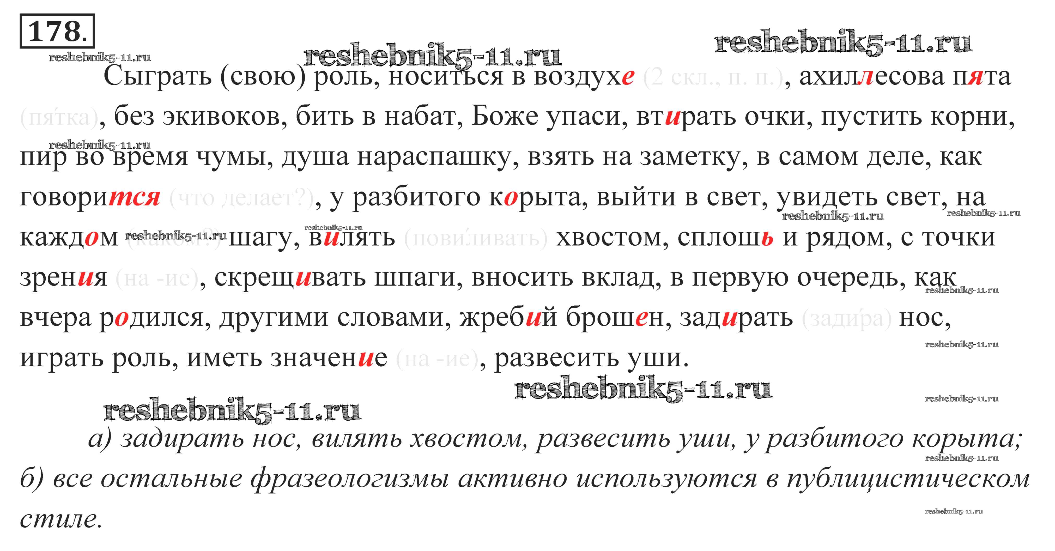 Готовая домашняя работа с ответами по Русскому языку за 10, 11 класс Власенков, Рыбченкова Учебник Базовый уровень Просвещение 2014 - Упражнения 178