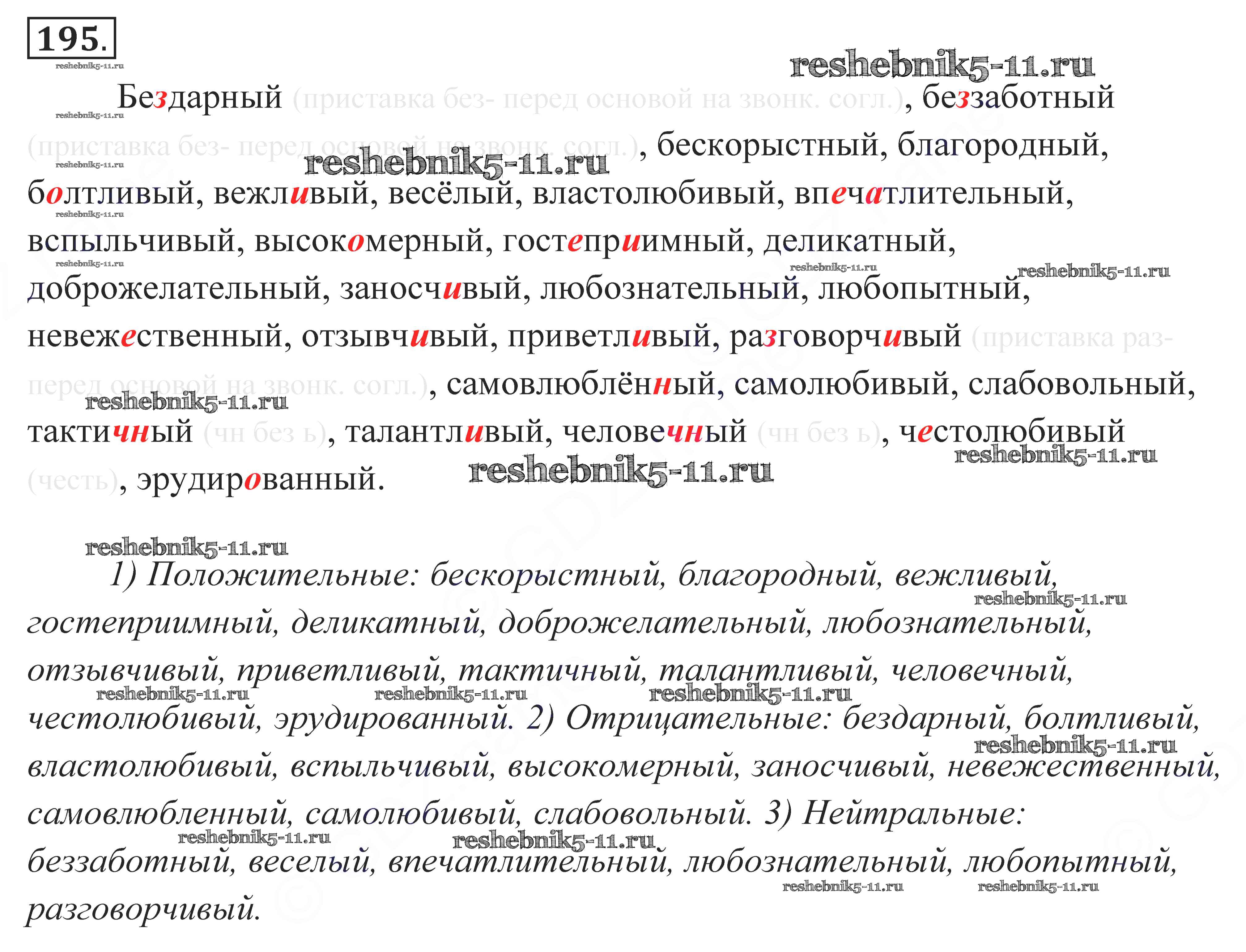 Готовая домашняя работа с ответами по Русскому языку за 10, 11 класс Власенков, Рыбченкова Учебник Базовый уровень Просвещение 2014 - Упражнения 195