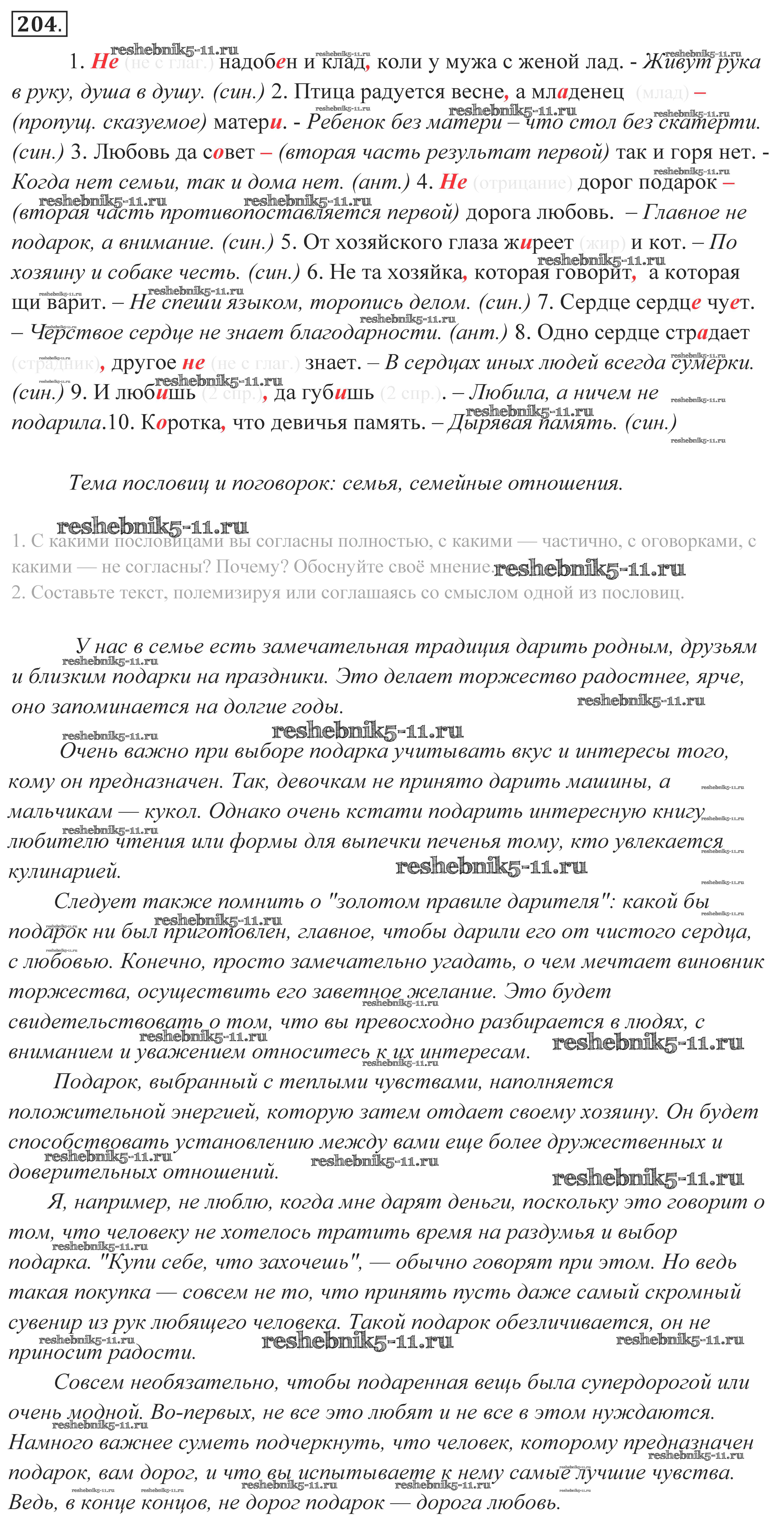 Готовая домашняя работа с ответами по Русскому языку за 10, 11 класс Власенков, Рыбченкова Учебник Базовый уровень Просвещение 2014 - Упражнения 204