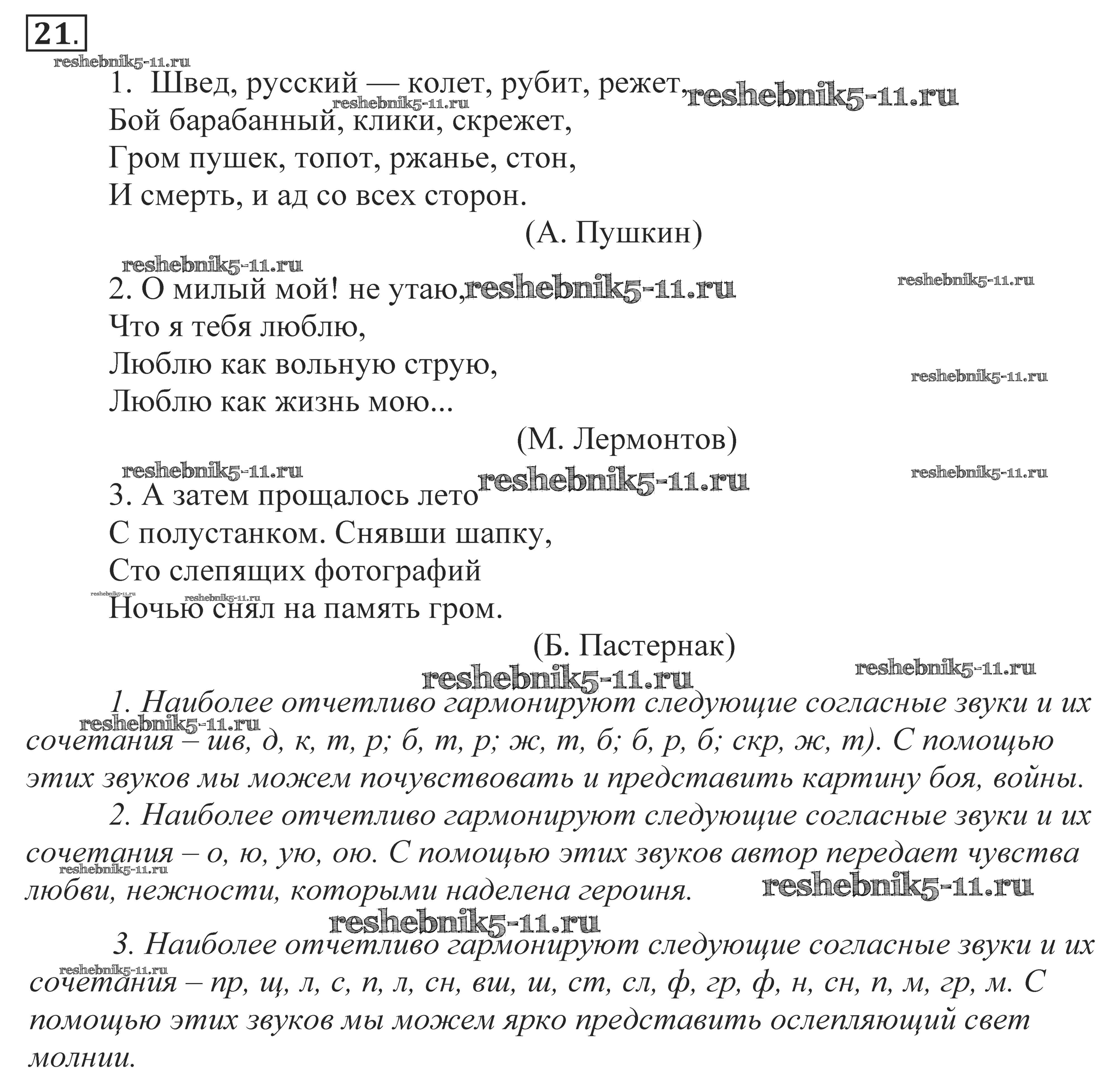 Готовая домашняя работа с ответами по Русскому языку за 10, 11 класс Власенков, Рыбченкова Учебник Базовый уровень Просвещение 2014 - Упражнения 21