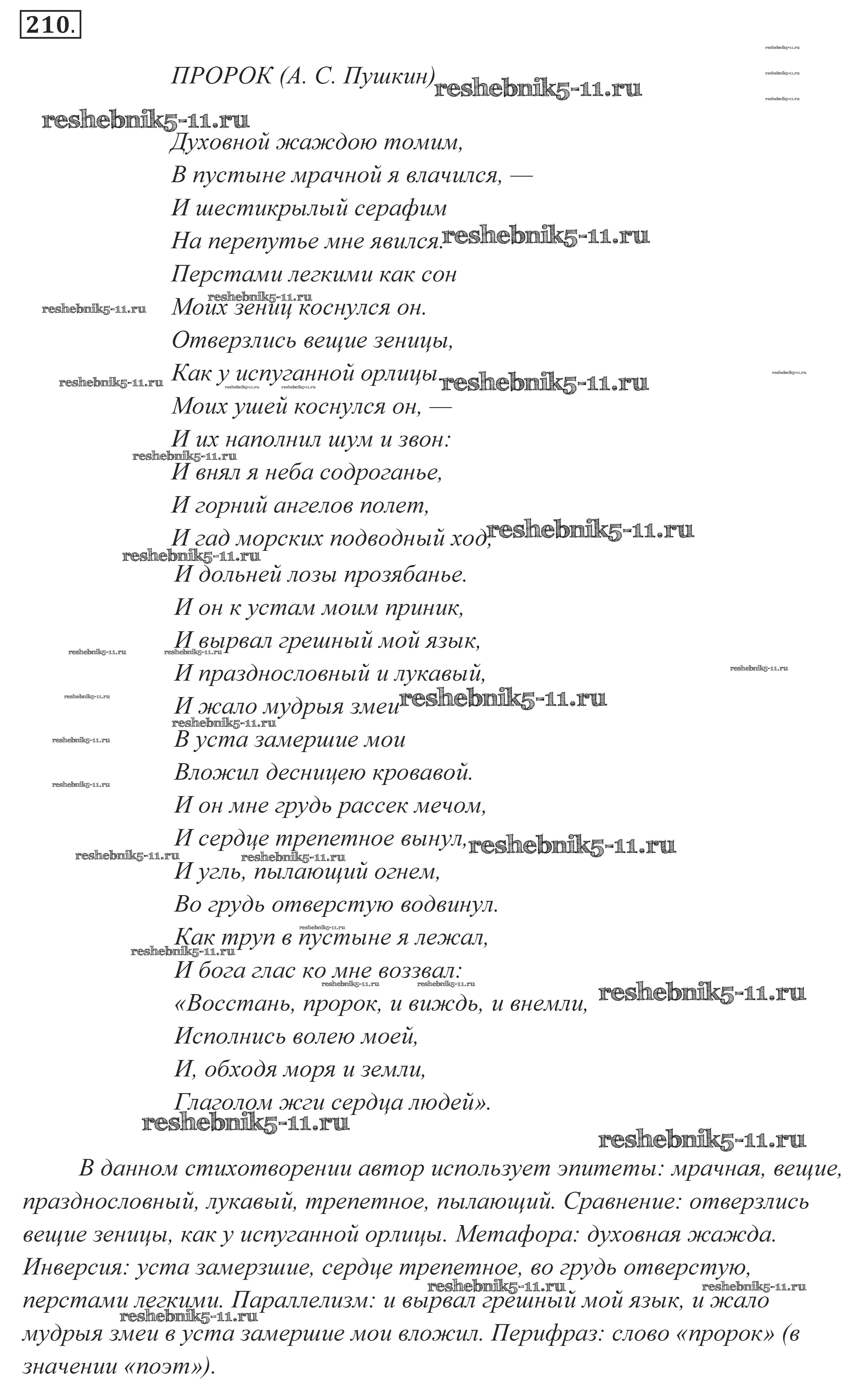 Готовая домашняя работа с ответами по Русскому языку за 10, 11 класс Власенков, Рыбченкова Учебник Базовый уровень Просвещение 2014 - Упражнения 210