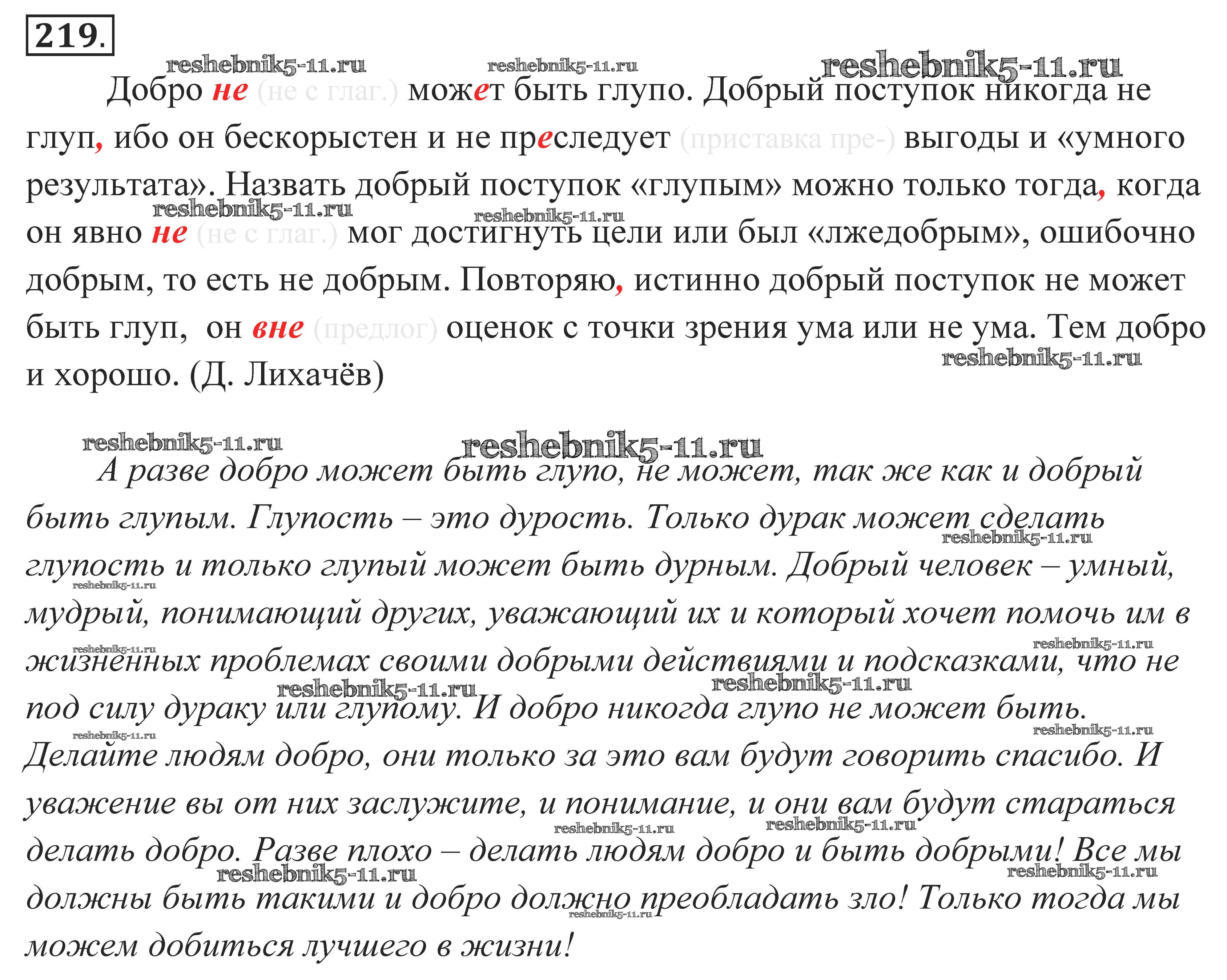 Готовая домашняя работа с ответами по Русскому языку за 10, 11 класс Власенков, Рыбченкова Учебник Базовый уровень Просвещение 2014 - Упражнения 219