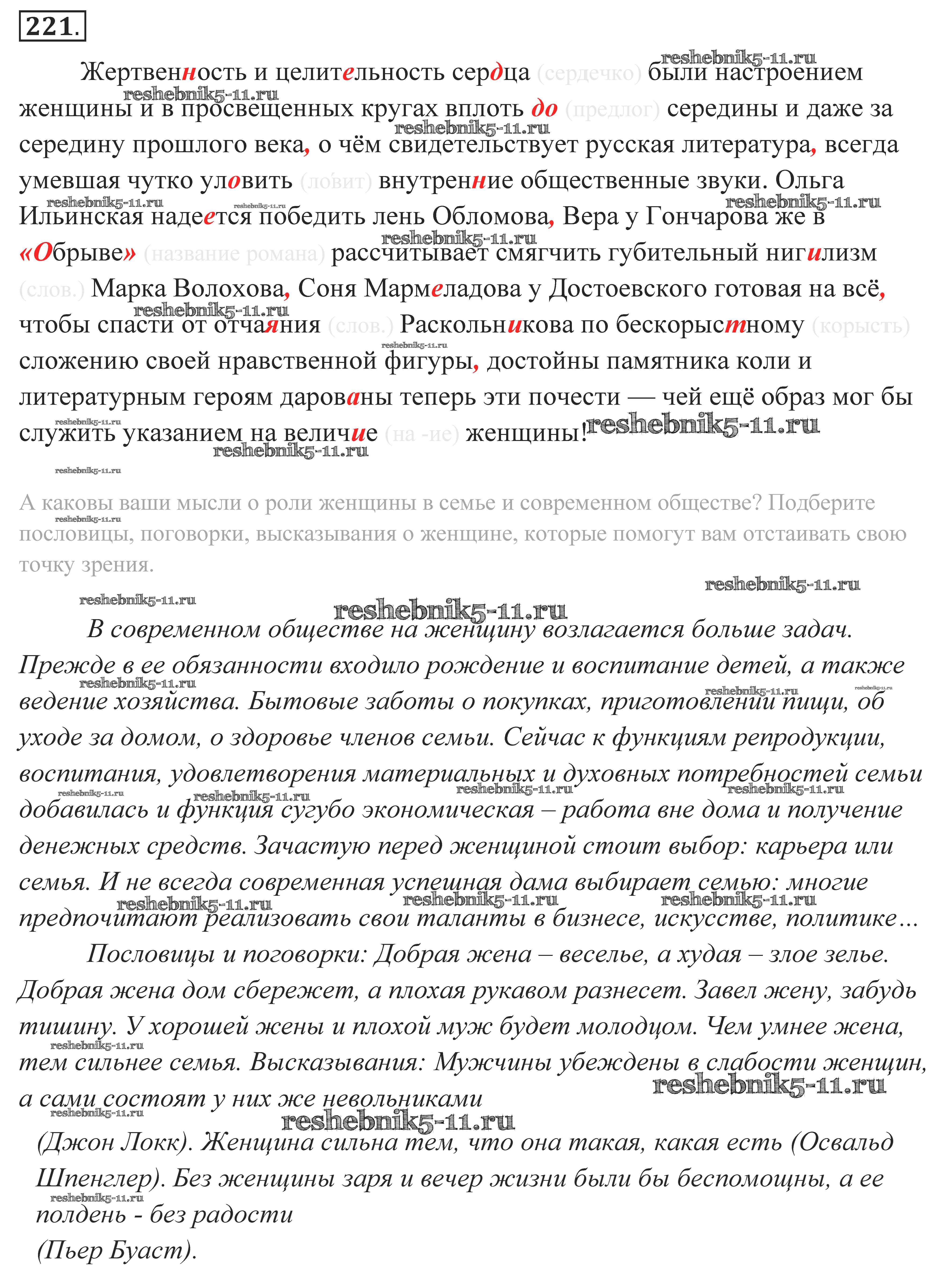 Готовая домашняя работа с ответами по Русскому языку за 10, 11 класс Власенков, Рыбченкова Учебник Базовый уровень Просвещение 2014 - Упражнения 221