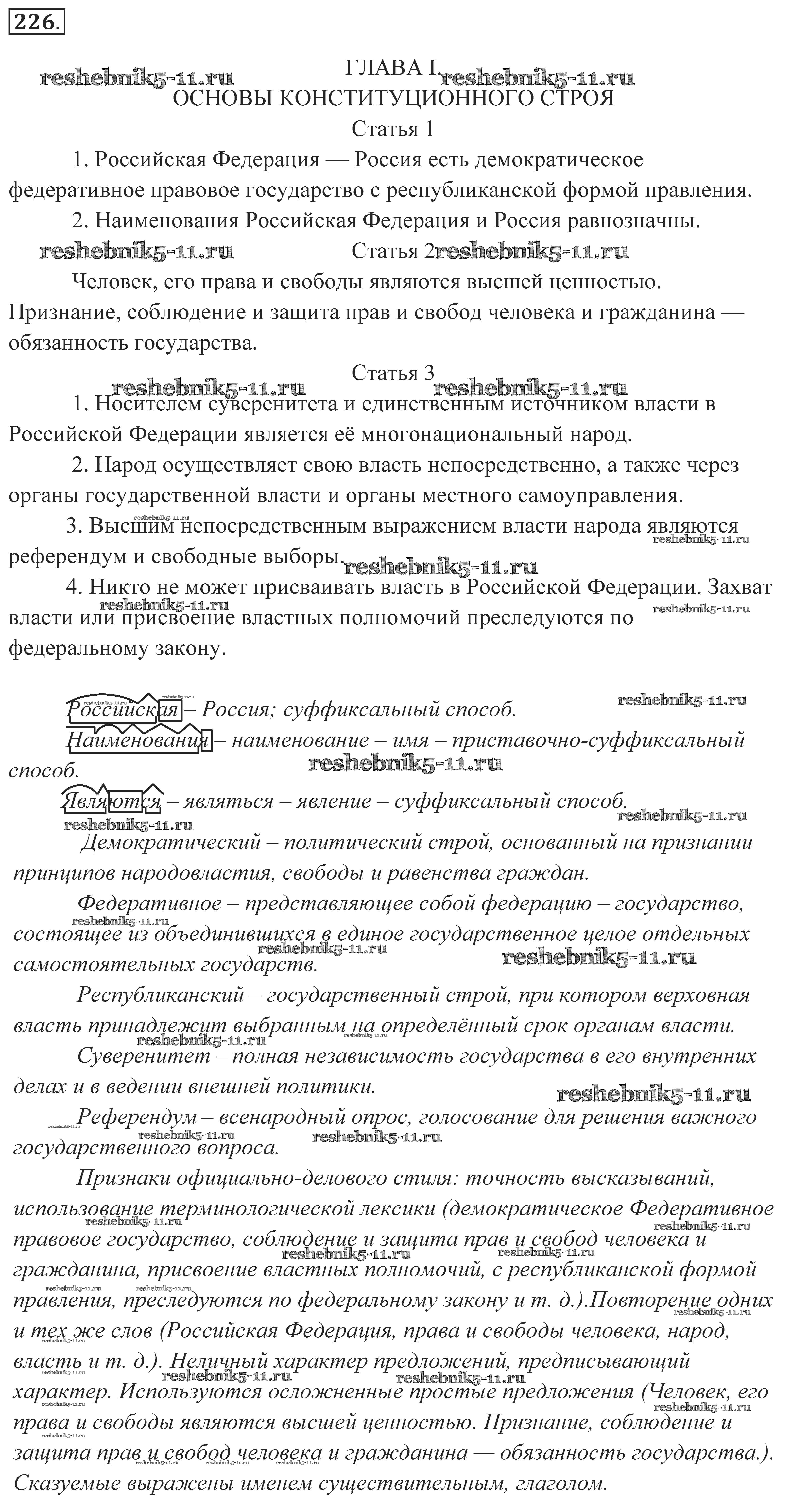 Готовая домашняя работа с ответами по Русскому языку за 10, 11 класс Власенков, Рыбченкова Учебник Базовый уровень Просвещение 2014 - Упражнения 226