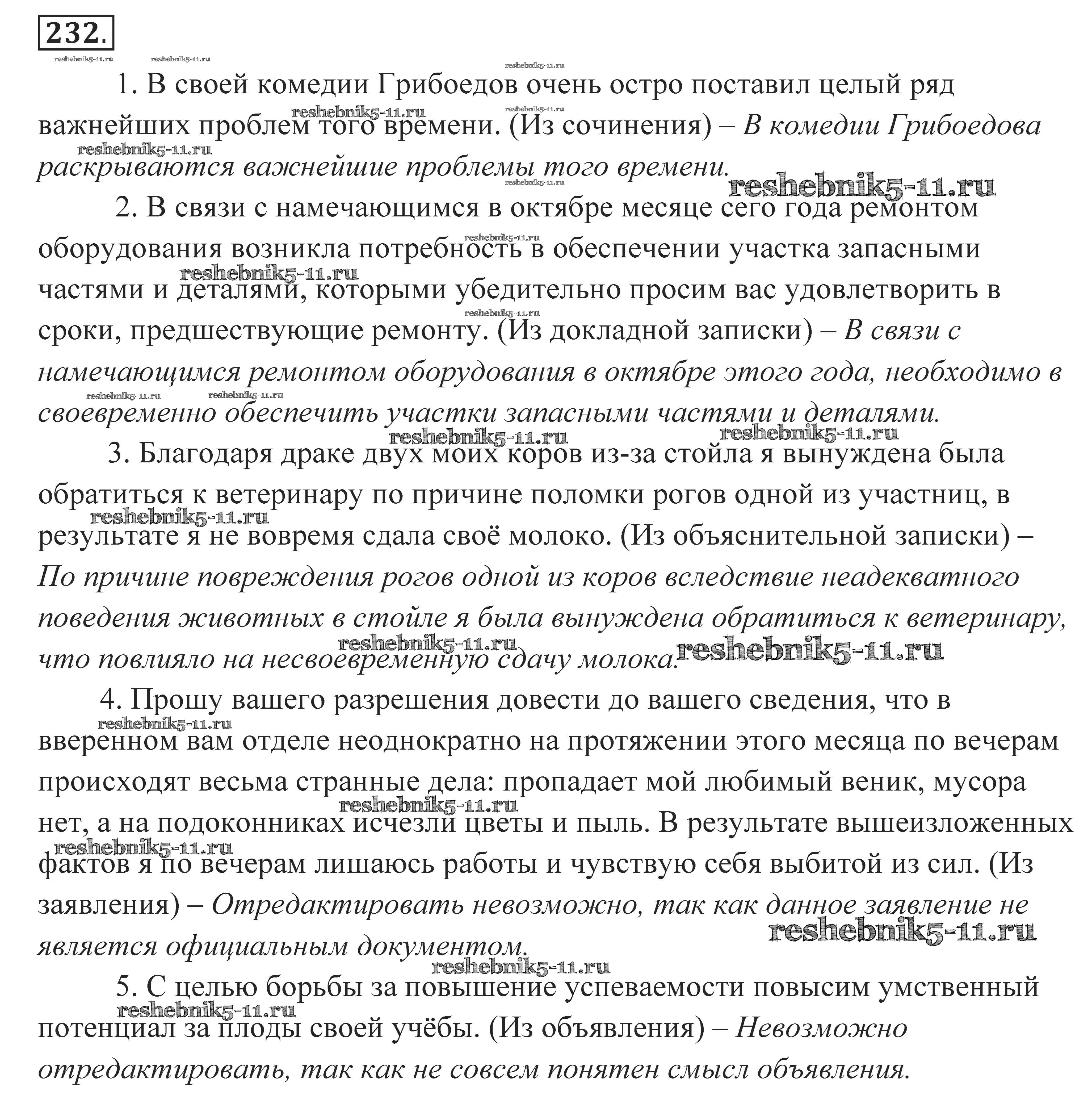 Готовая домашняя работа с ответами по Русскому языку за 10, 11 класс Власенков, Рыбченкова Учебник Базовый уровень Просвещение 2014 - Упражнения 232