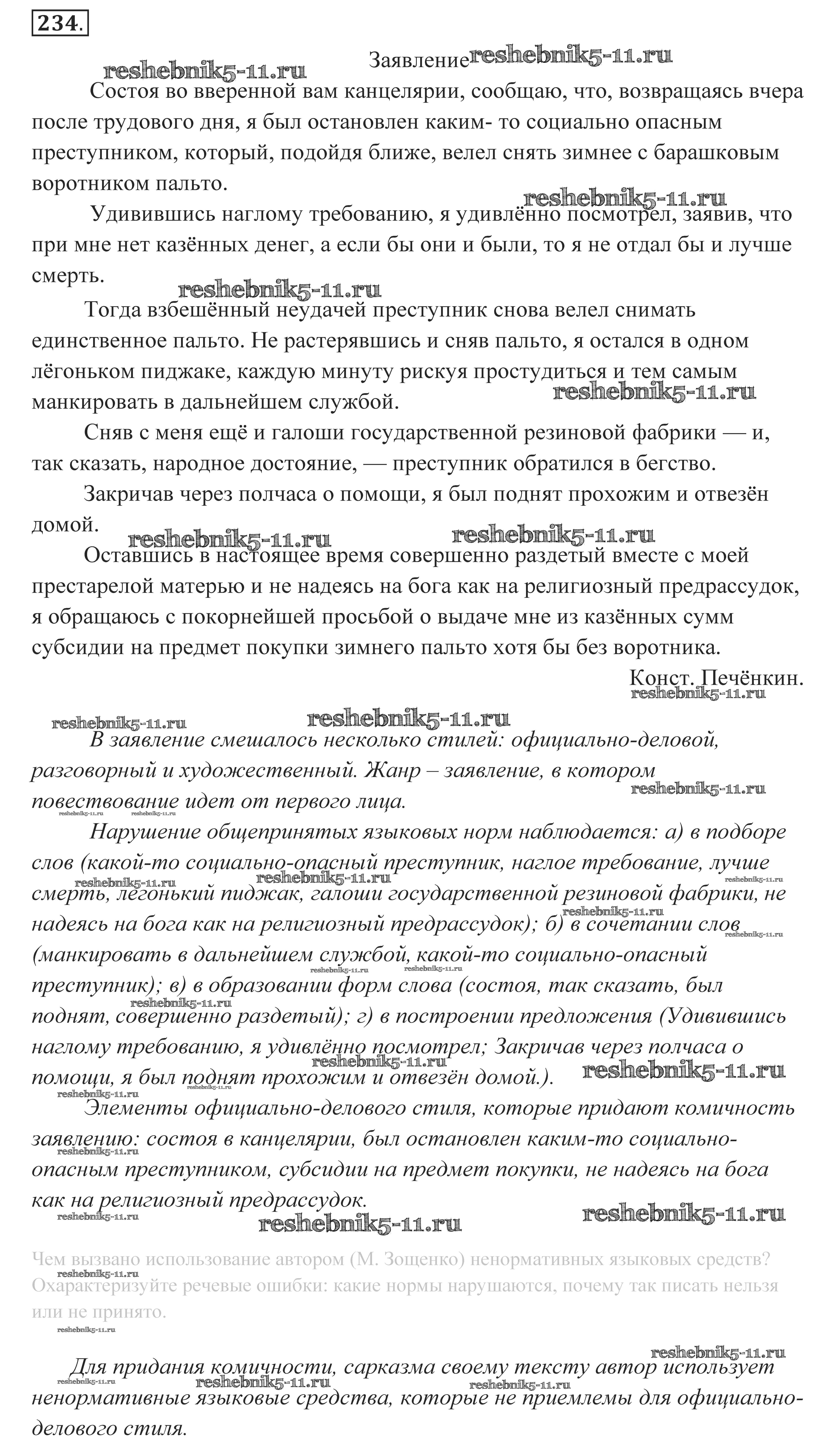 Готовая домашняя работа с ответами по Русскому языку за 10, 11 класс Власенков, Рыбченкова Учебник Базовый уровень Просвещение 2014 - Упражнения 234
