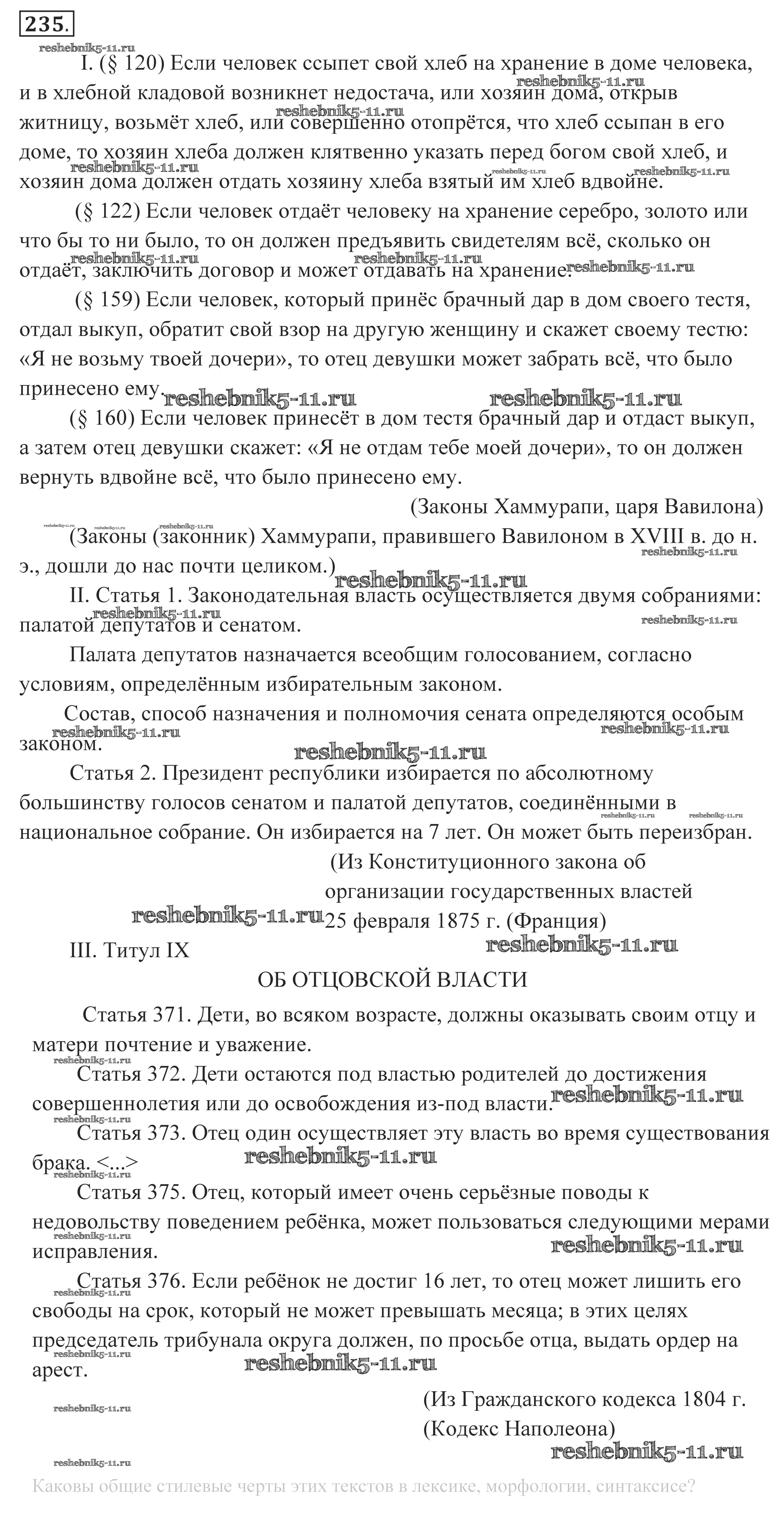 Готовая домашняя работа с ответами по Русскому языку за 10, 11 класс Власенков, Рыбченкова Учебник Базовый уровень Просвещение 2014 - Упражнения 235