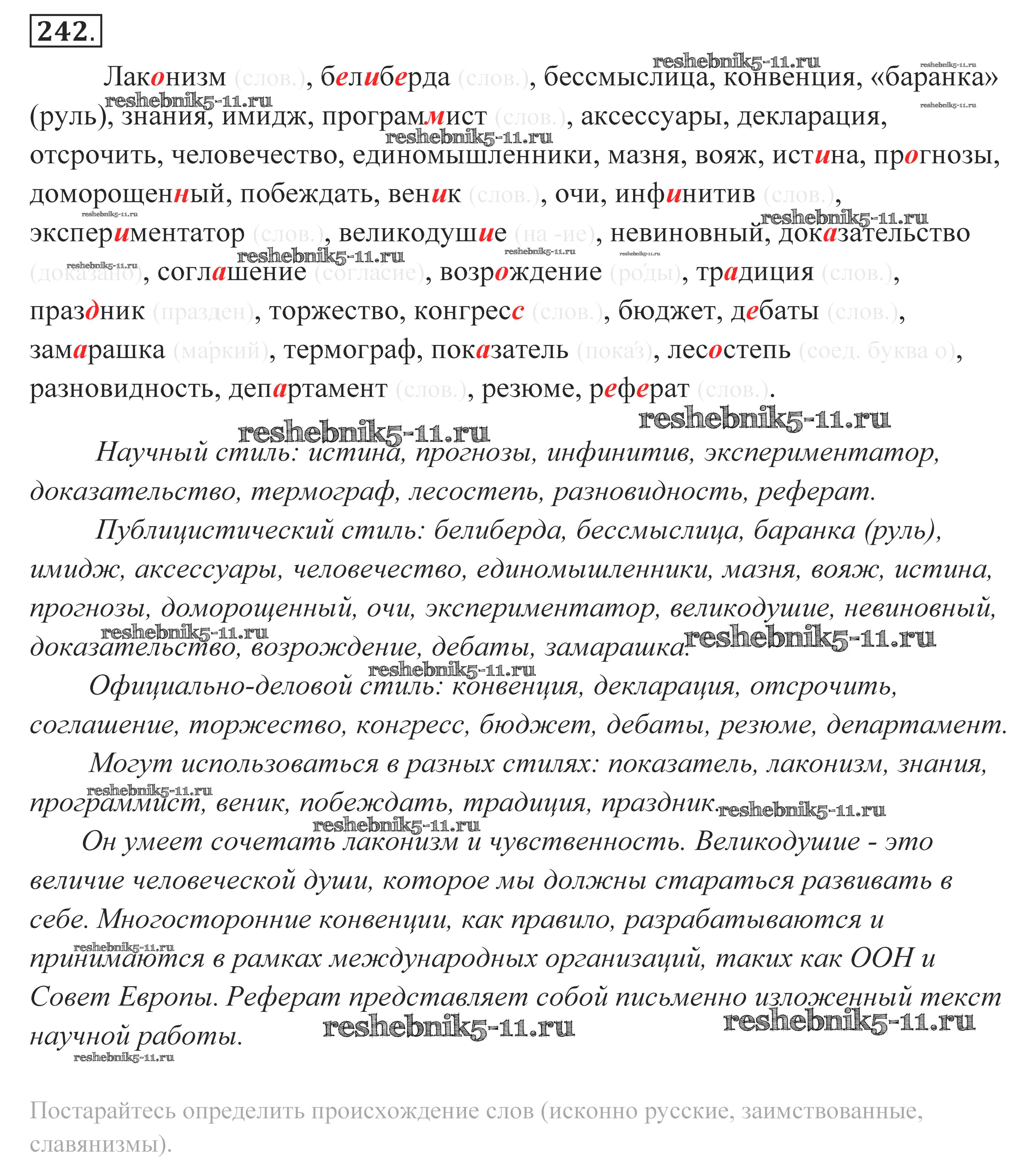 Готовая домашняя работа с ответами по Русскому языку за 10, 11 класс Власенков, Рыбченкова Учебник Базовый уровень Просвещение 2014 - Упражнения 242
