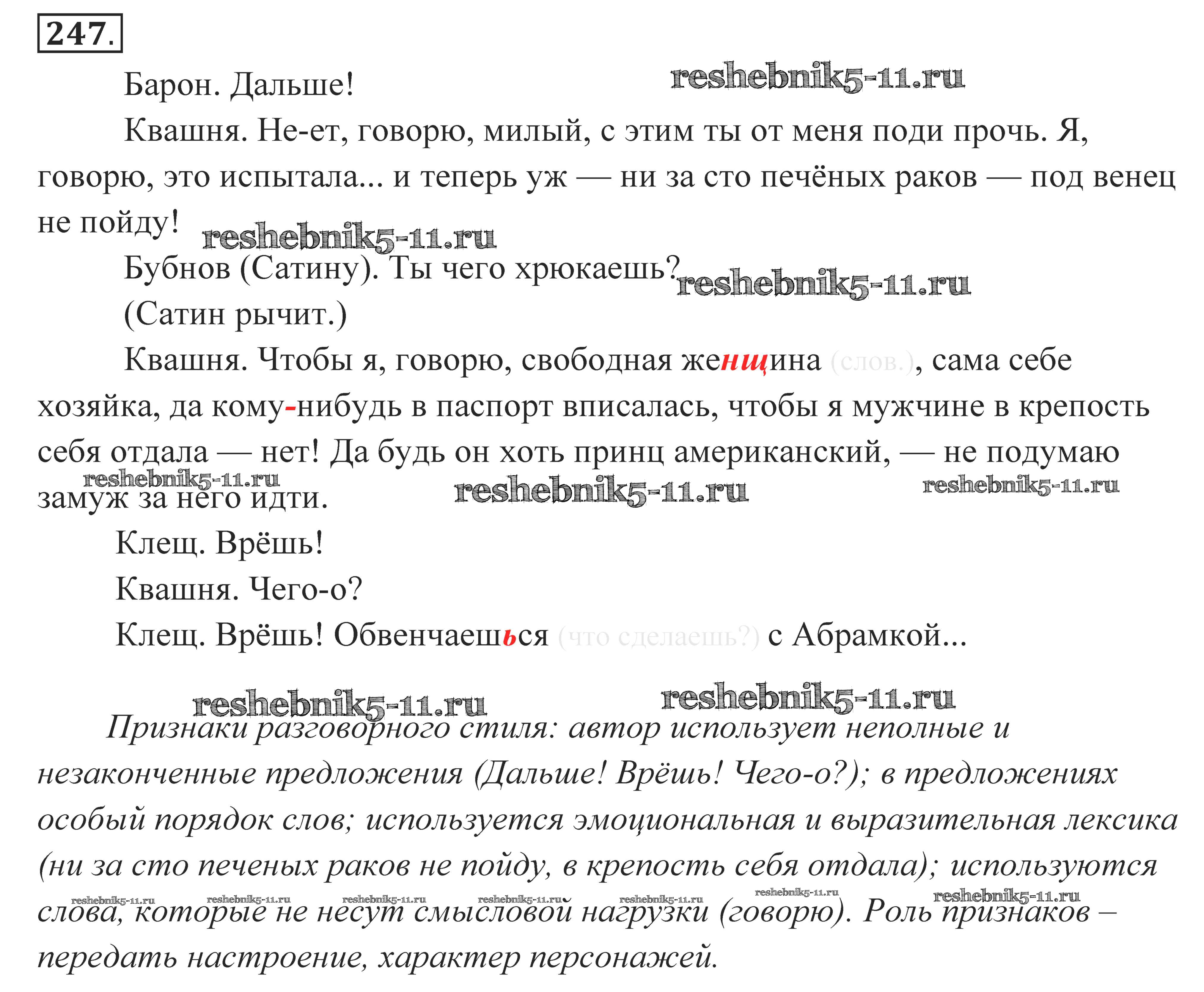 Готовая домашняя работа с ответами по Русскому языку за 10, 11 класс Власенков, Рыбченкова Учебник Базовый уровень Просвещение 2014 - Упражнения 247