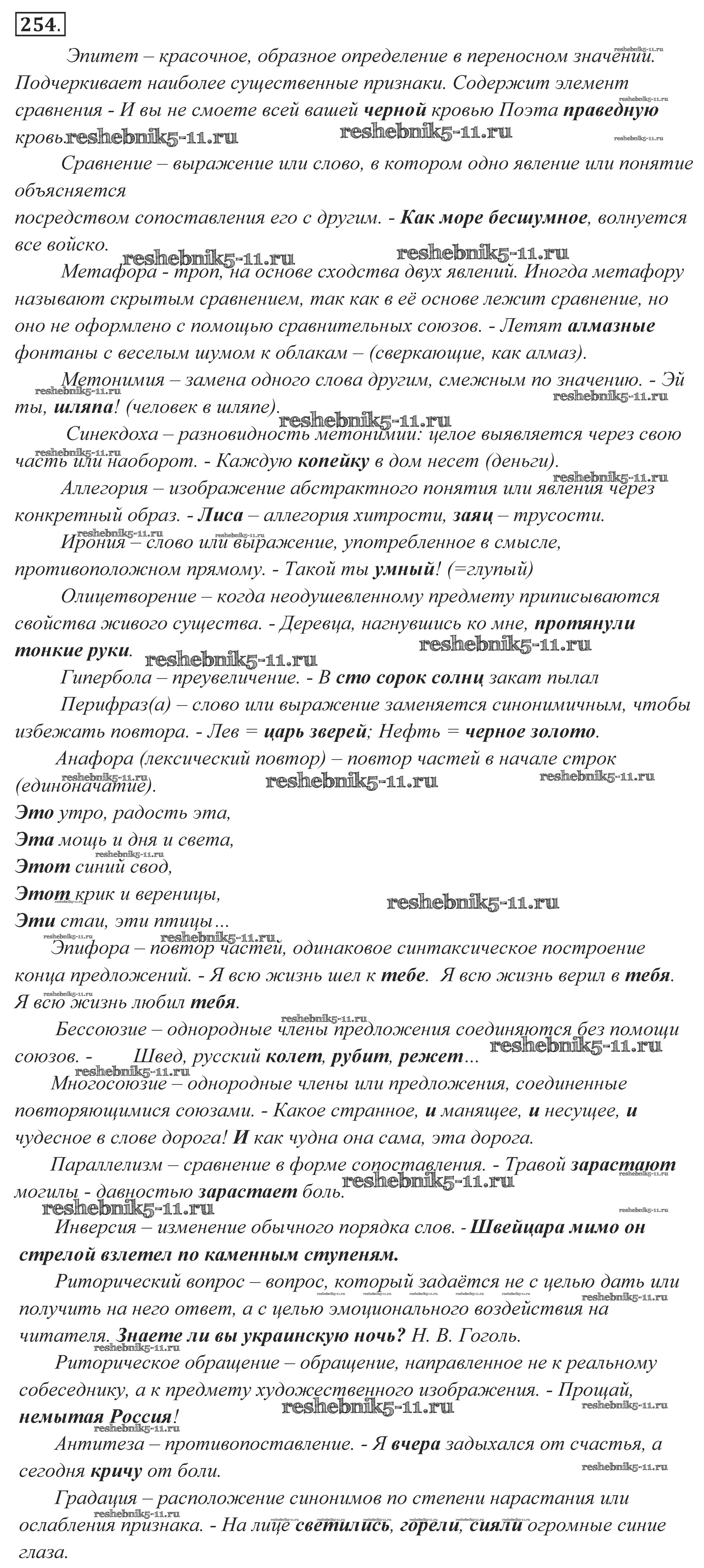 Готовая домашняя работа с ответами по Русскому языку за 10, 11 класс Власенков, Рыбченкова Учебник Базовый уровень Просвещение 2014 - Упражнения 254