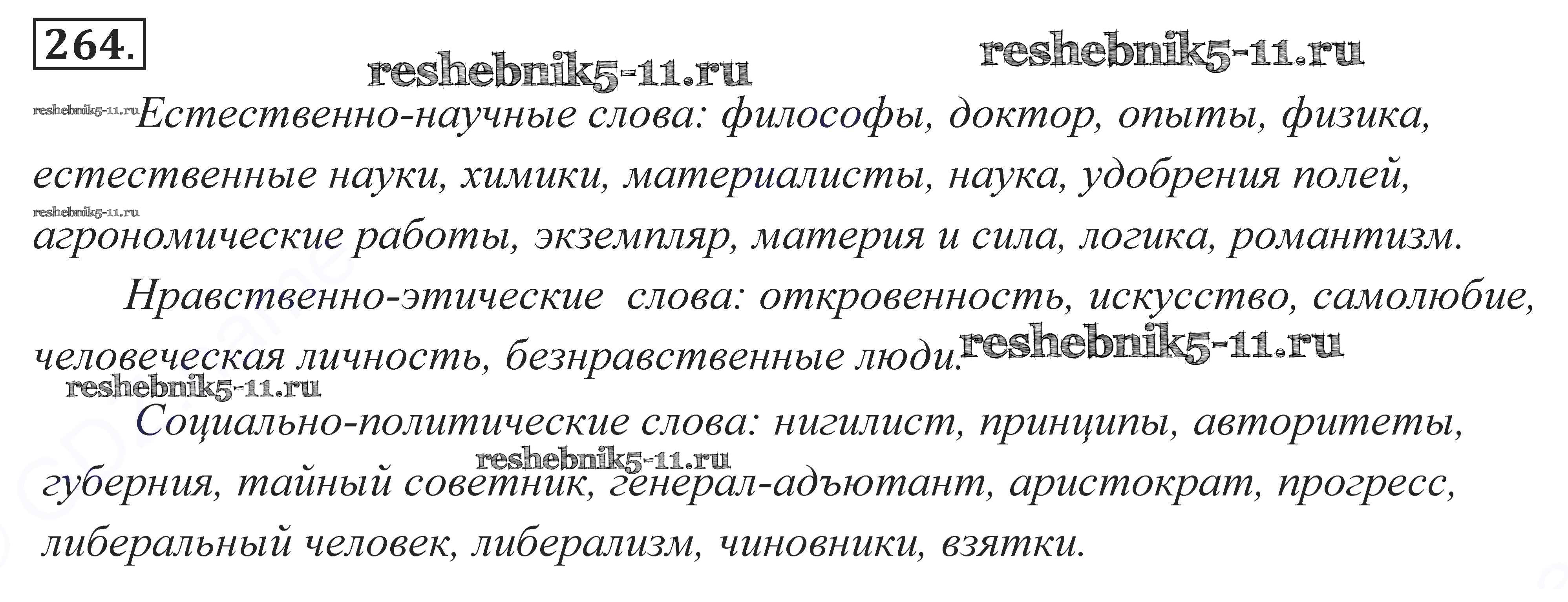 Готовая домашняя работа с ответами по Русскому языку за 10, 11 класс Власенков, Рыбченкова Учебник Базовый уровень Просвещение 2014 - Упражнения 264