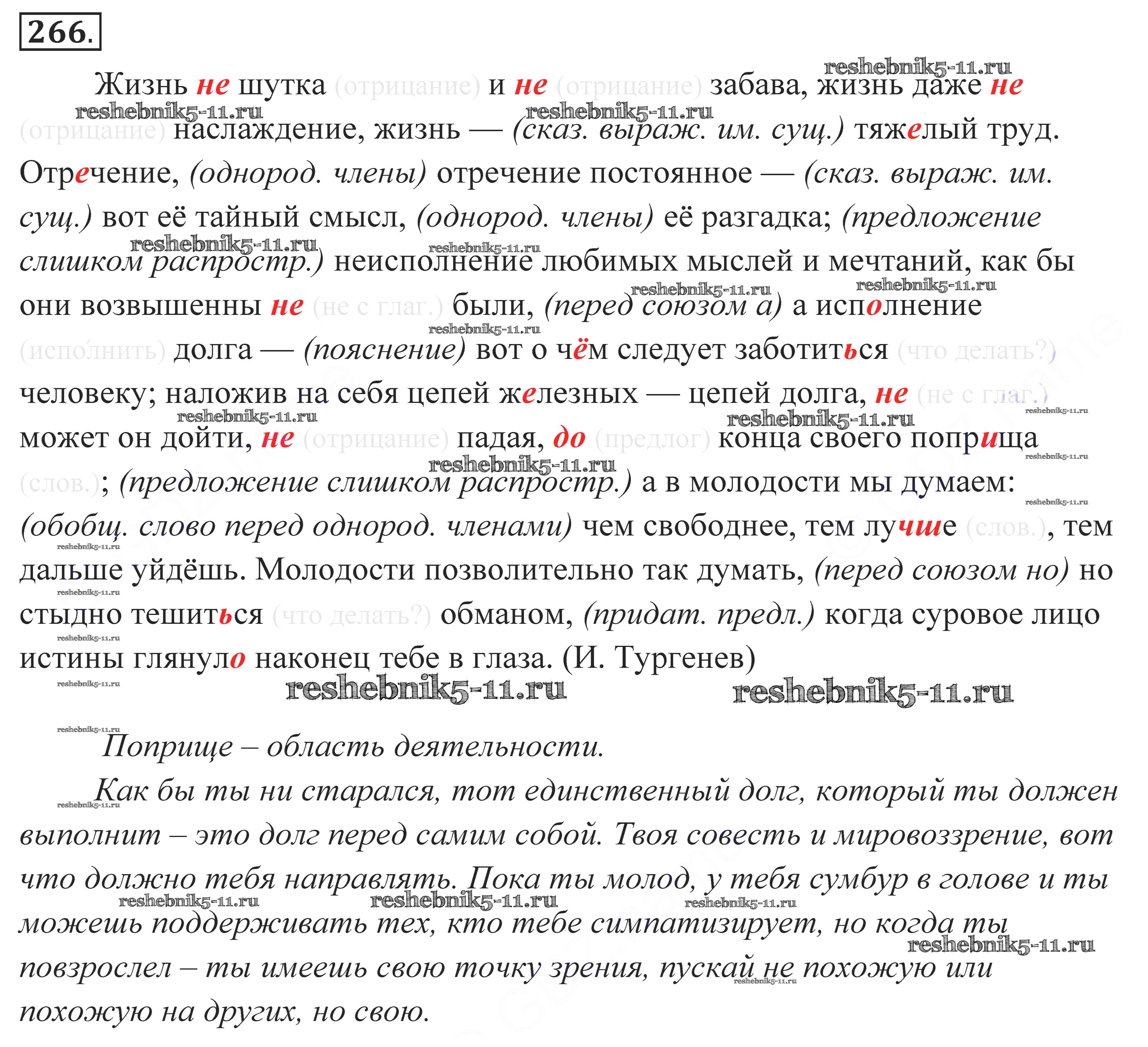 Готовая домашняя работа с ответами по Русскому языку за 10, 11 класс Власенков, Рыбченкова Учебник Базовый уровень Просвещение 2014 - Упражнения 266