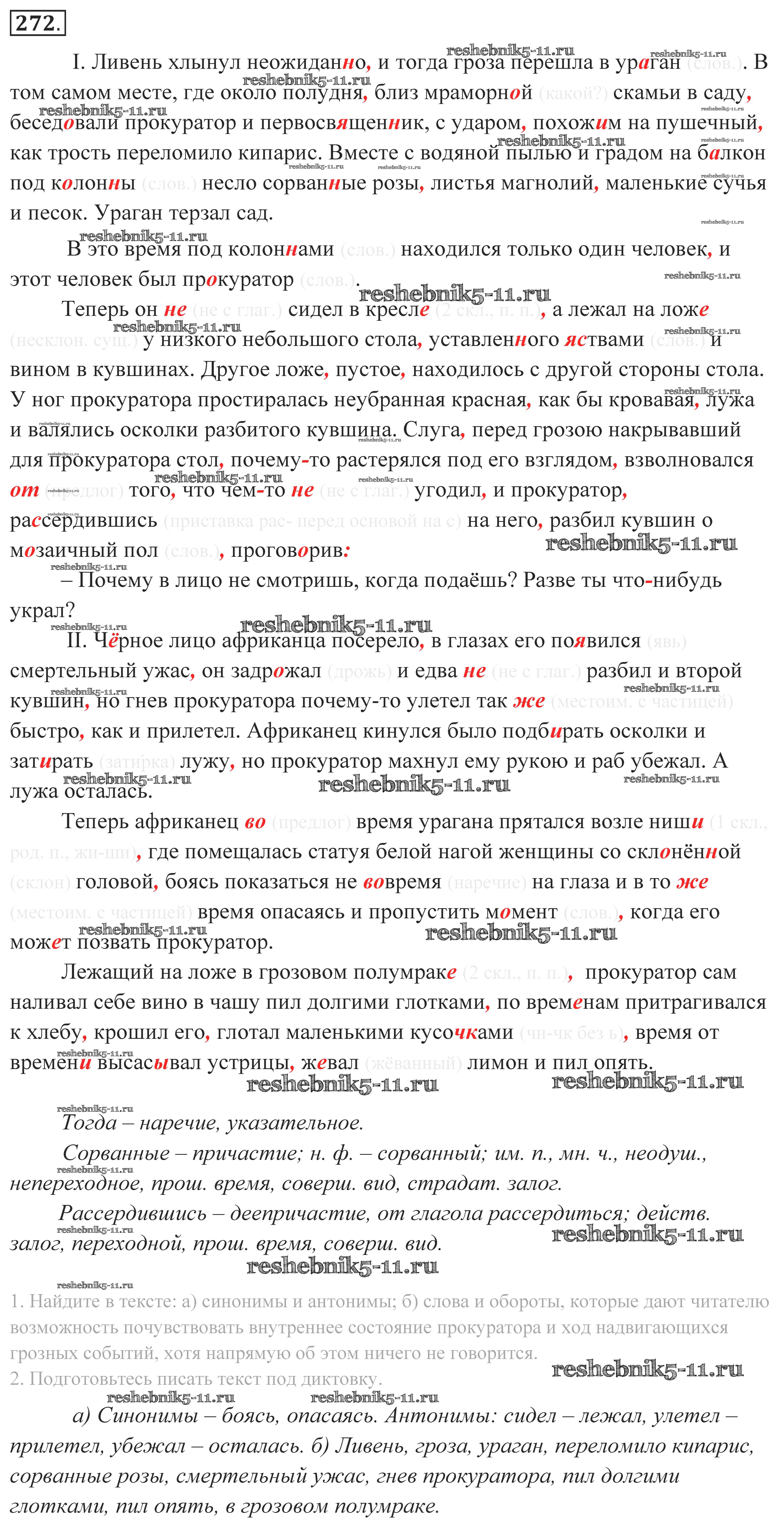 Готовая домашняя работа с ответами по Русскому языку за 10, 11 класс Власенков, Рыбченкова Учебник Базовый уровень Просвещение 2014 - Упражнения 272