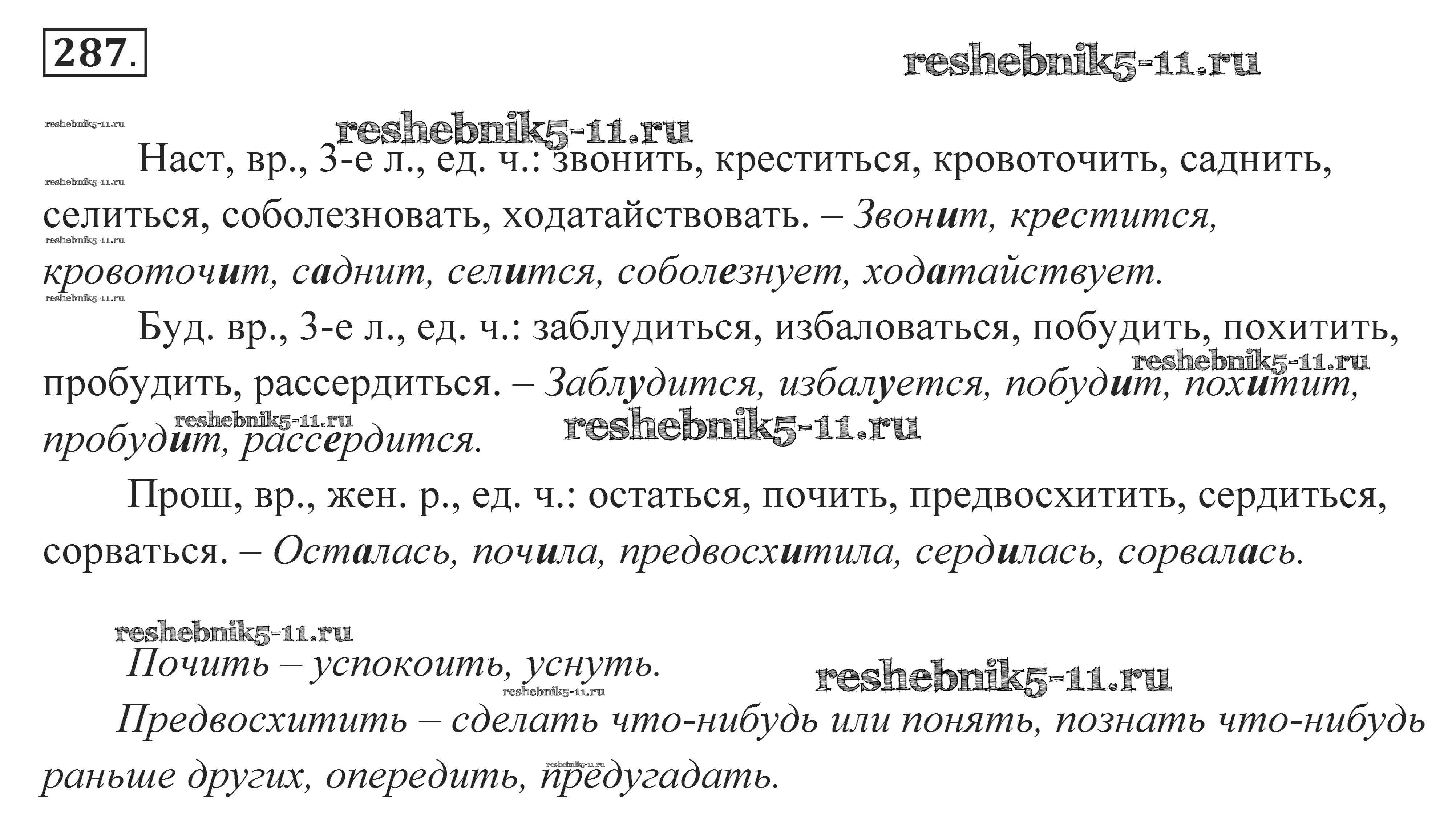 Готовая домашняя работа с ответами по Русскому языку за 10, 11 класс Власенков, Рыбченкова Учебник Базовый уровень Просвещение 2014 - Упражнения 287