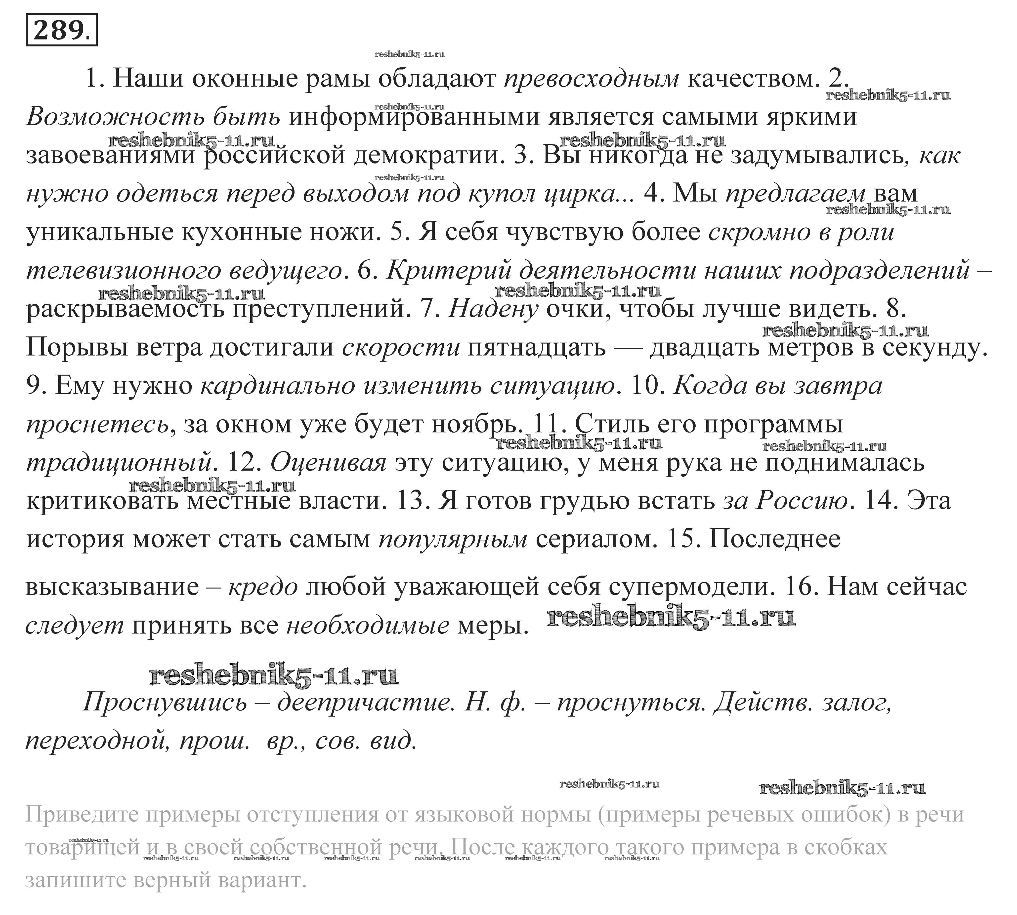 Готовая домашняя работа с ответами по Русскому языку за 10, 11 класс Власенков, Рыбченкова Учебник Базовый уровень Просвещение 2014 - Упражнения 289