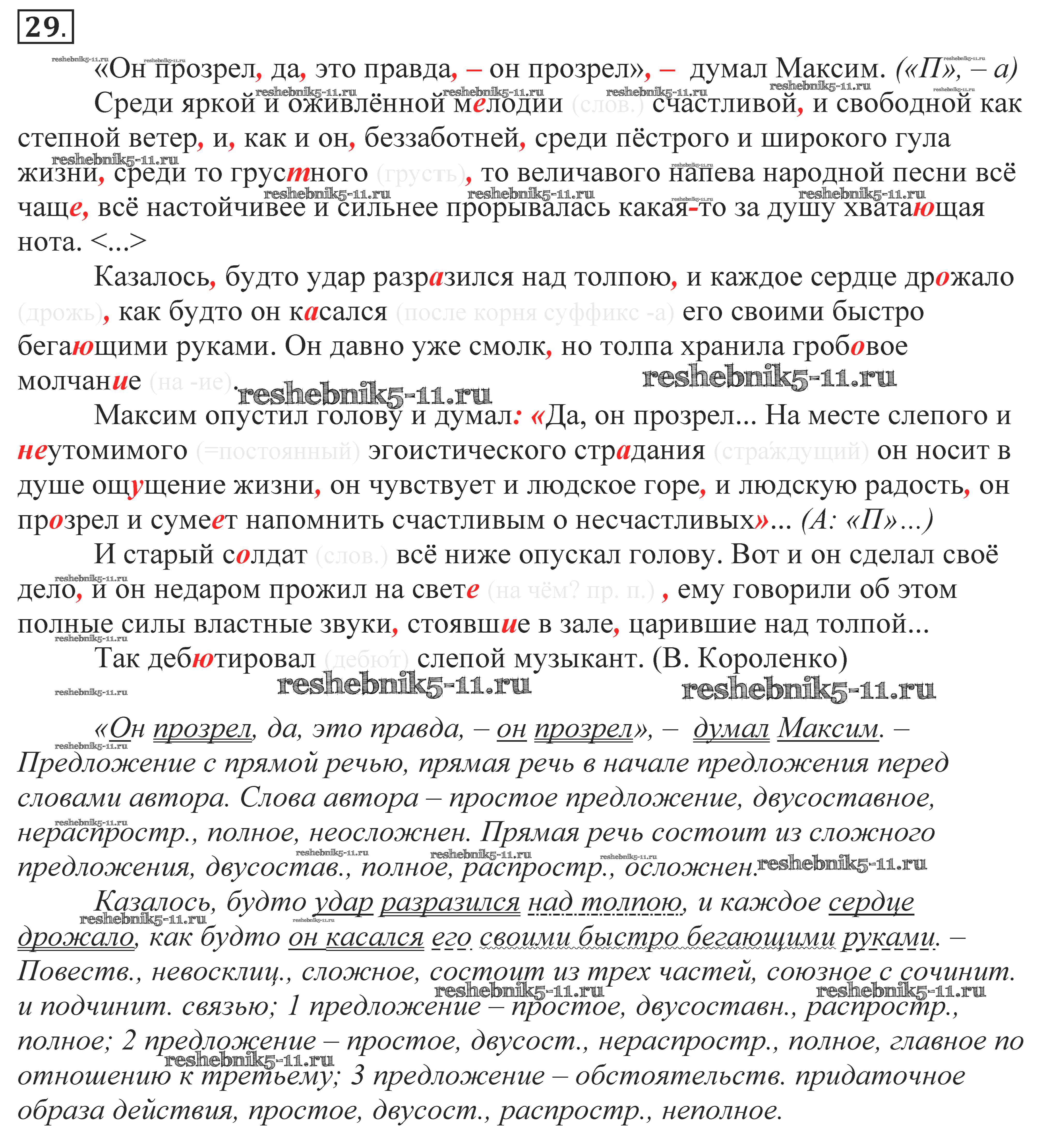 Готовая домашняя работа с ответами по Русскому языку за 10, 11 класс Власенков, Рыбченкова Учебник Базовый уровень Просвещение 2014 - Упражнения 29