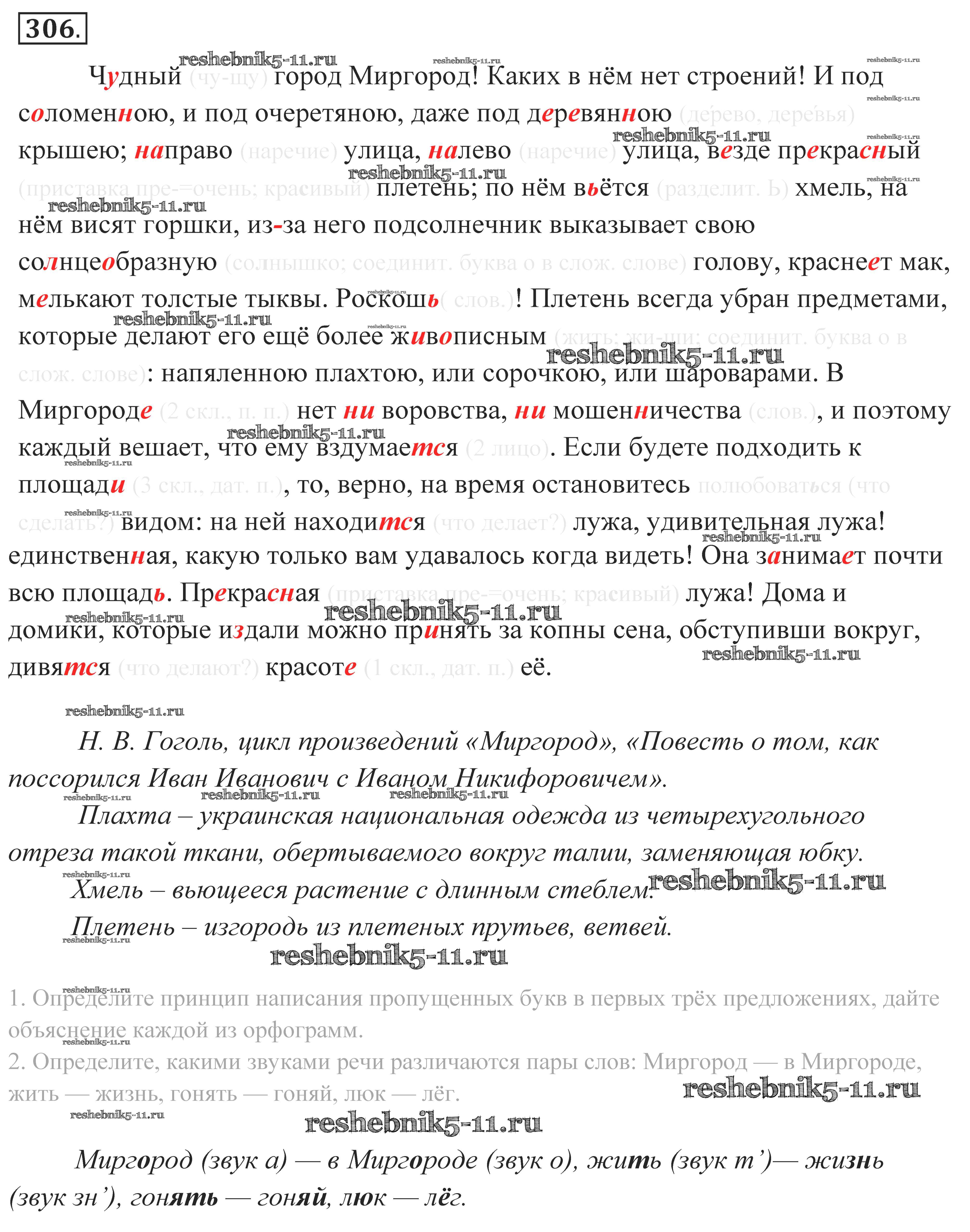 Готовая домашняя работа с ответами по Русскому языку за 10, 11 класс Власенков, Рыбченкова Учебник Базовый уровень Просвещение 2014 - Упражнения 306
