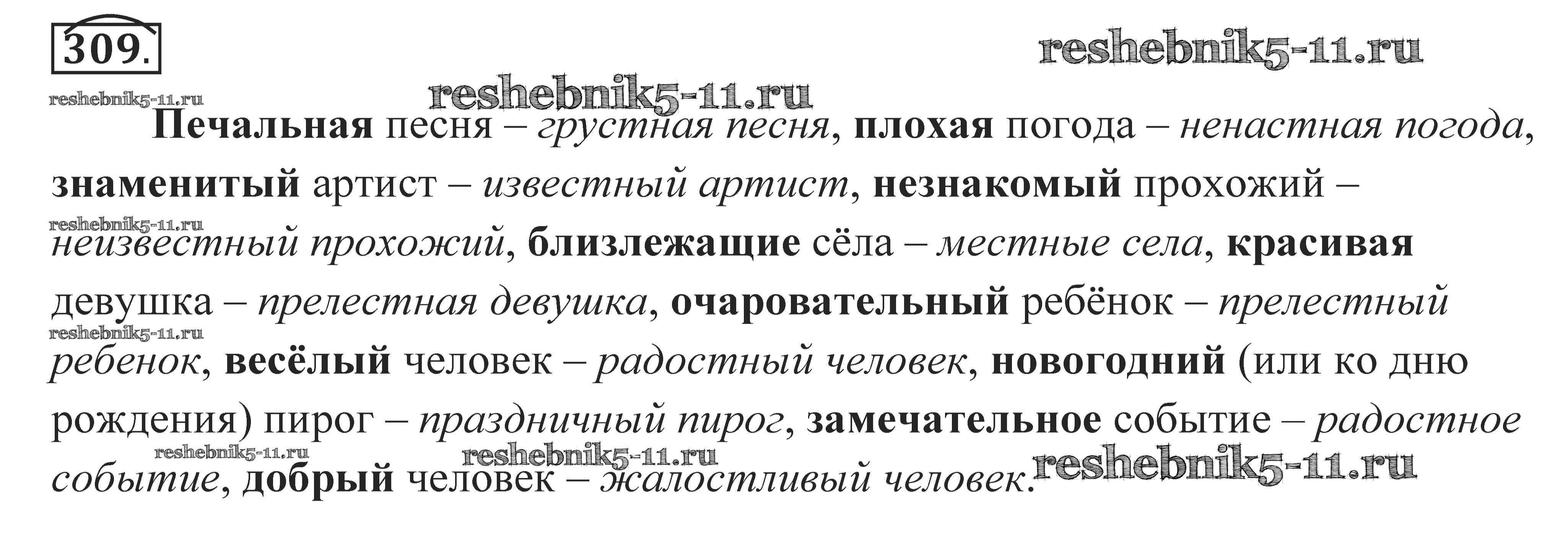 Готовая домашняя работа с ответами по Русскому языку за 10, 11 класс Власенков, Рыбченкова Учебник Базовый уровень Просвещение 2014 - Упражнения 309