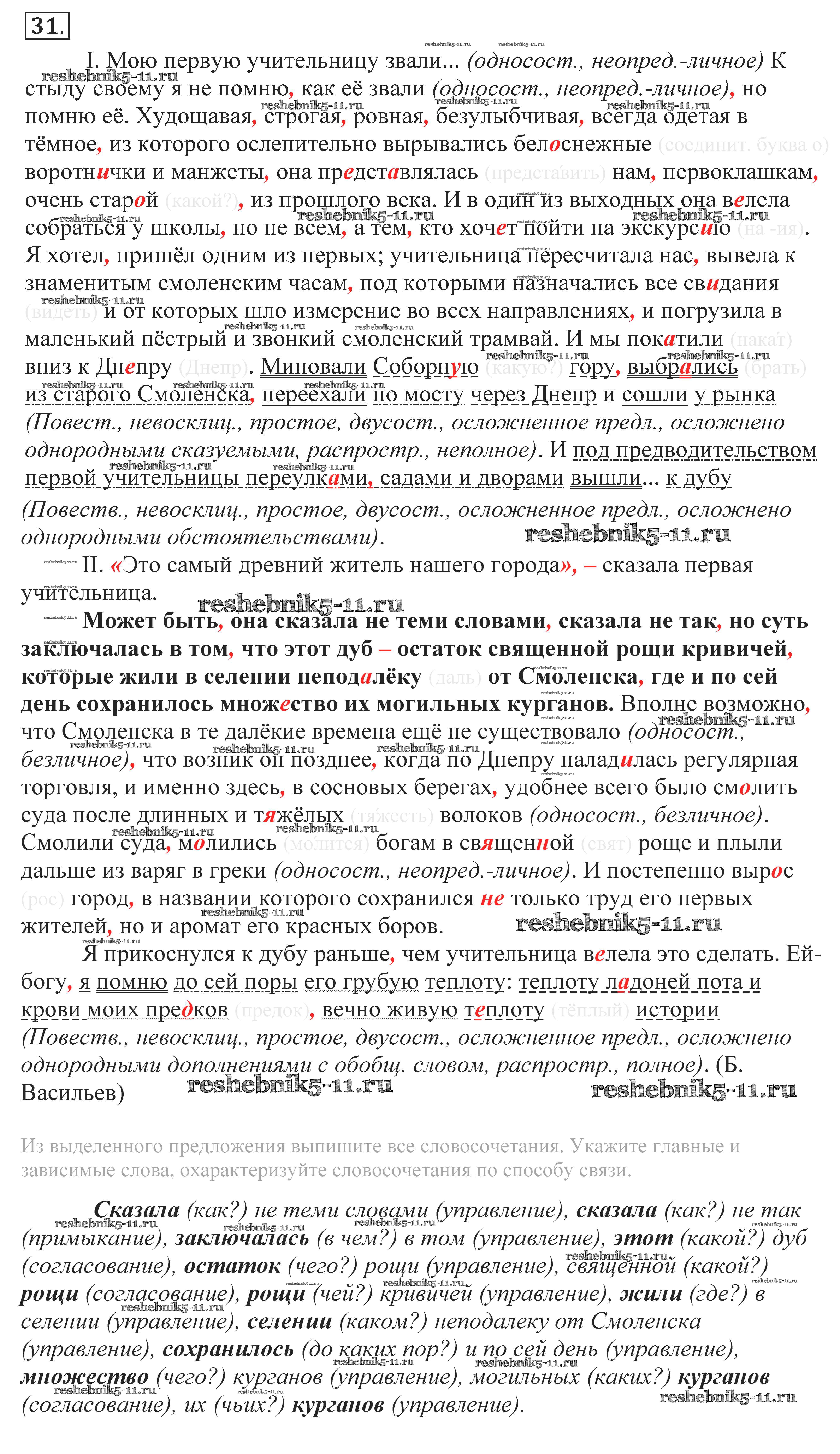 Готовая домашняя работа с ответами по Русскому языку за 10, 11 класс Власенков, Рыбченкова Учебник Базовый уровень Просвещение 2014 - Упражнения 31