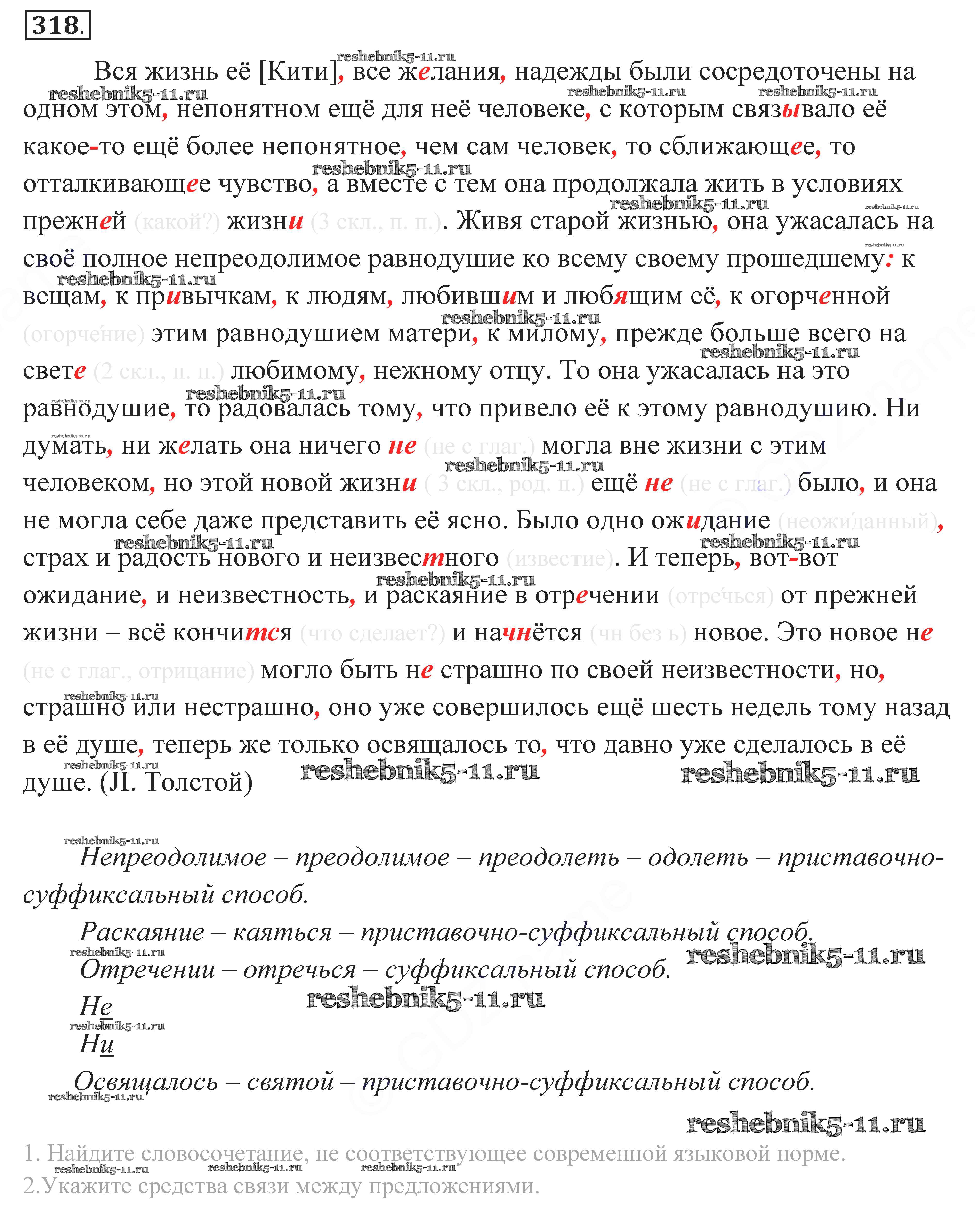 Готовая домашняя работа с ответами по Русскому языку за 10, 11 класс Власенков, Рыбченкова Учебник Базовый уровень Просвещение 2014 - Упражнения 318