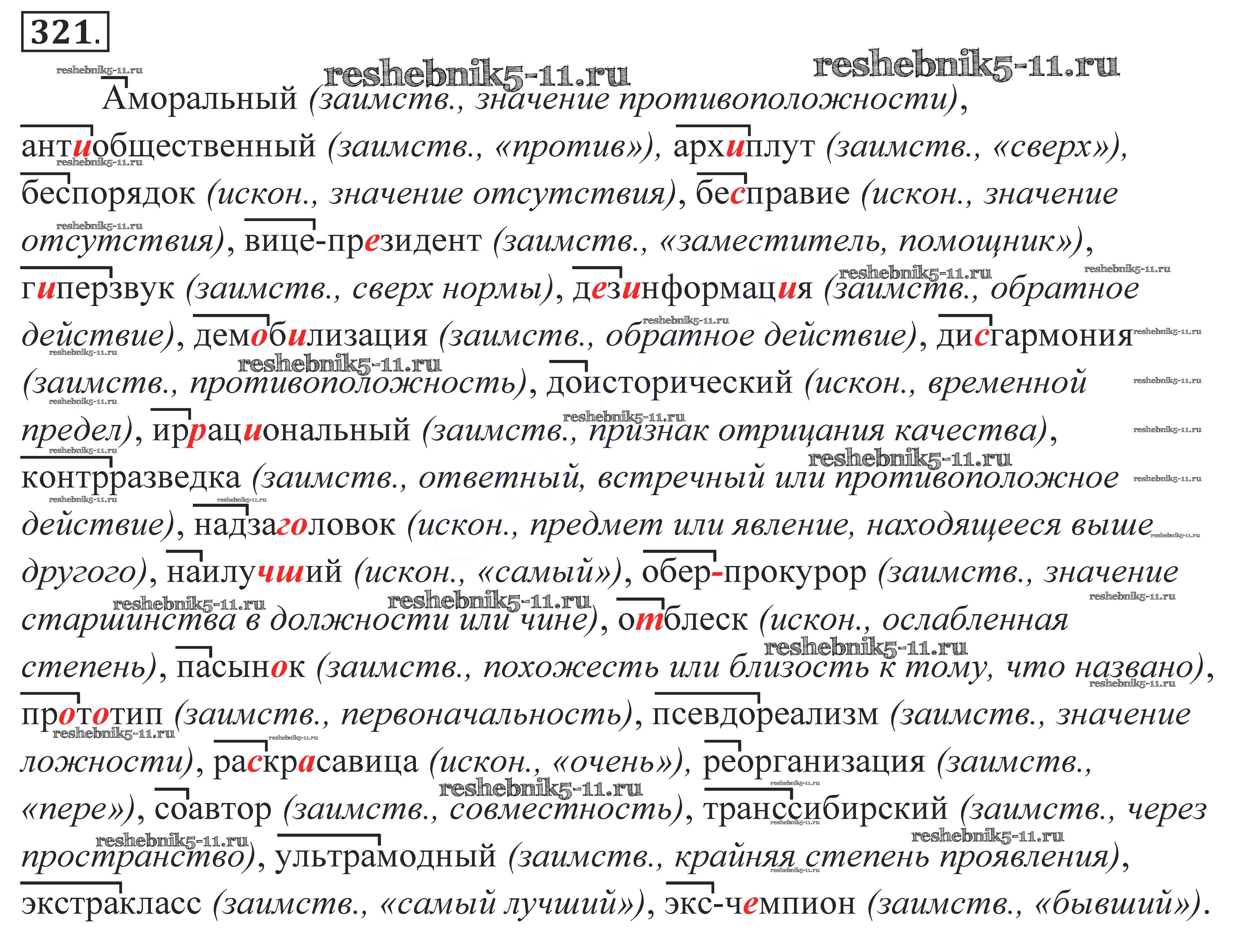 Готовая домашняя работа с ответами по Русскому языку за 10, 11 класс Власенков, Рыбченкова Учебник Базовый уровень Просвещение 2014 - Упражнения 321