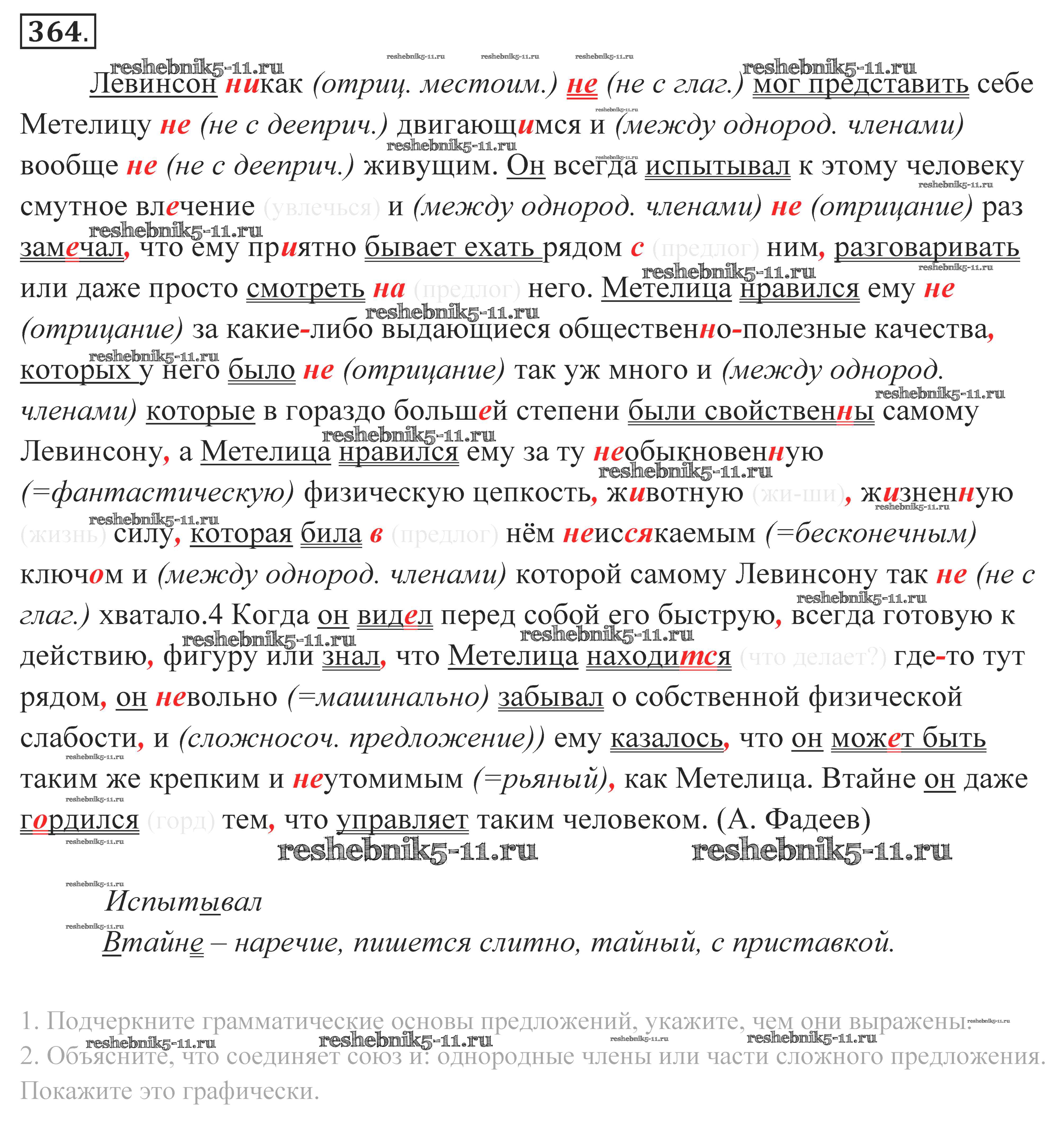 Готовая домашняя работа с ответами по Русскому языку за 10, 11 класс Власенков, Рыбченкова Учебник Базовый уровень Просвещение 2014 - Упражнения 364