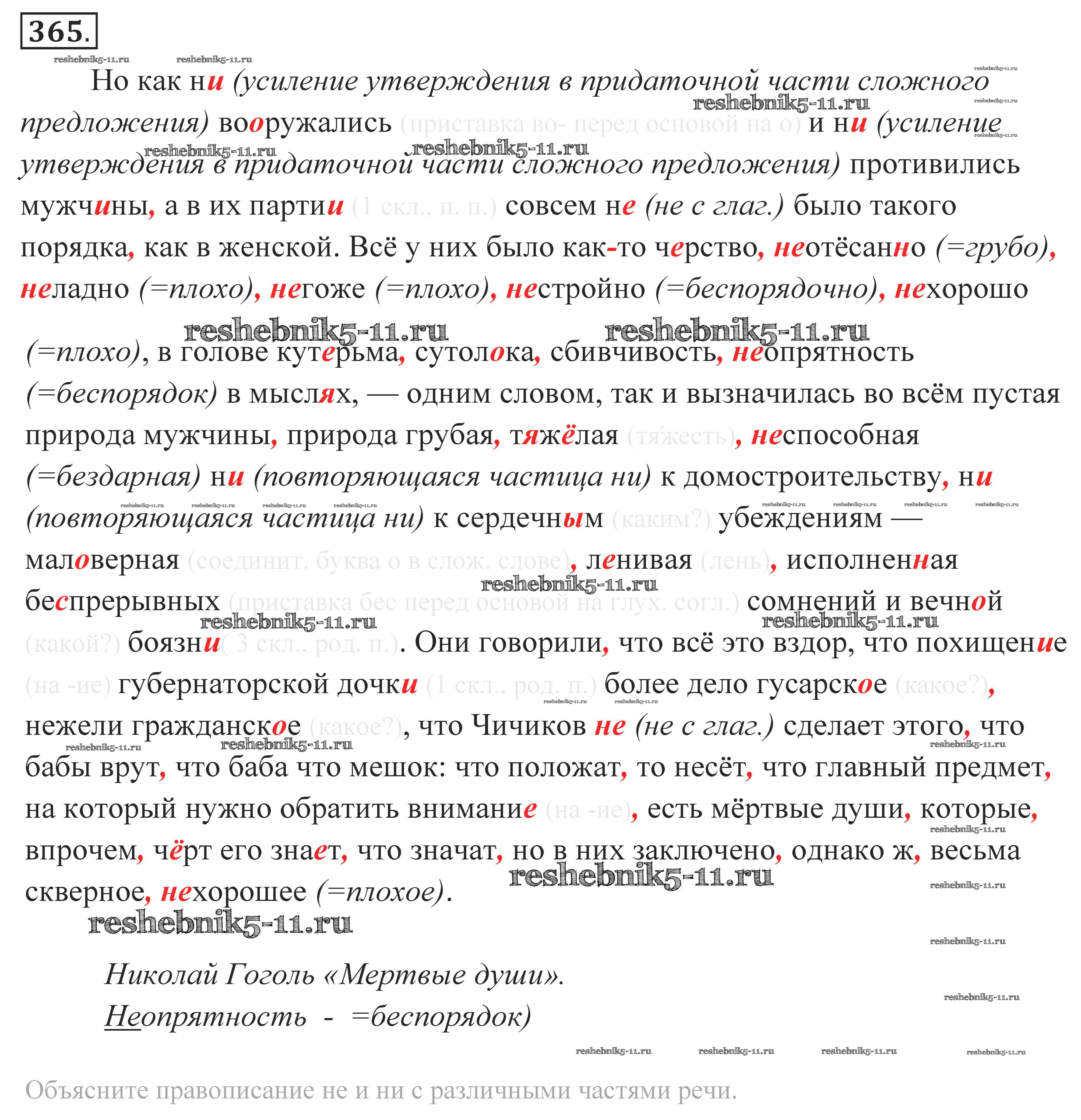 Готовая домашняя работа с ответами по Русскому языку за 10, 11 класс Власенков, Рыбченкова Учебник Базовый уровень Просвещение 2014 - Упражнения 365