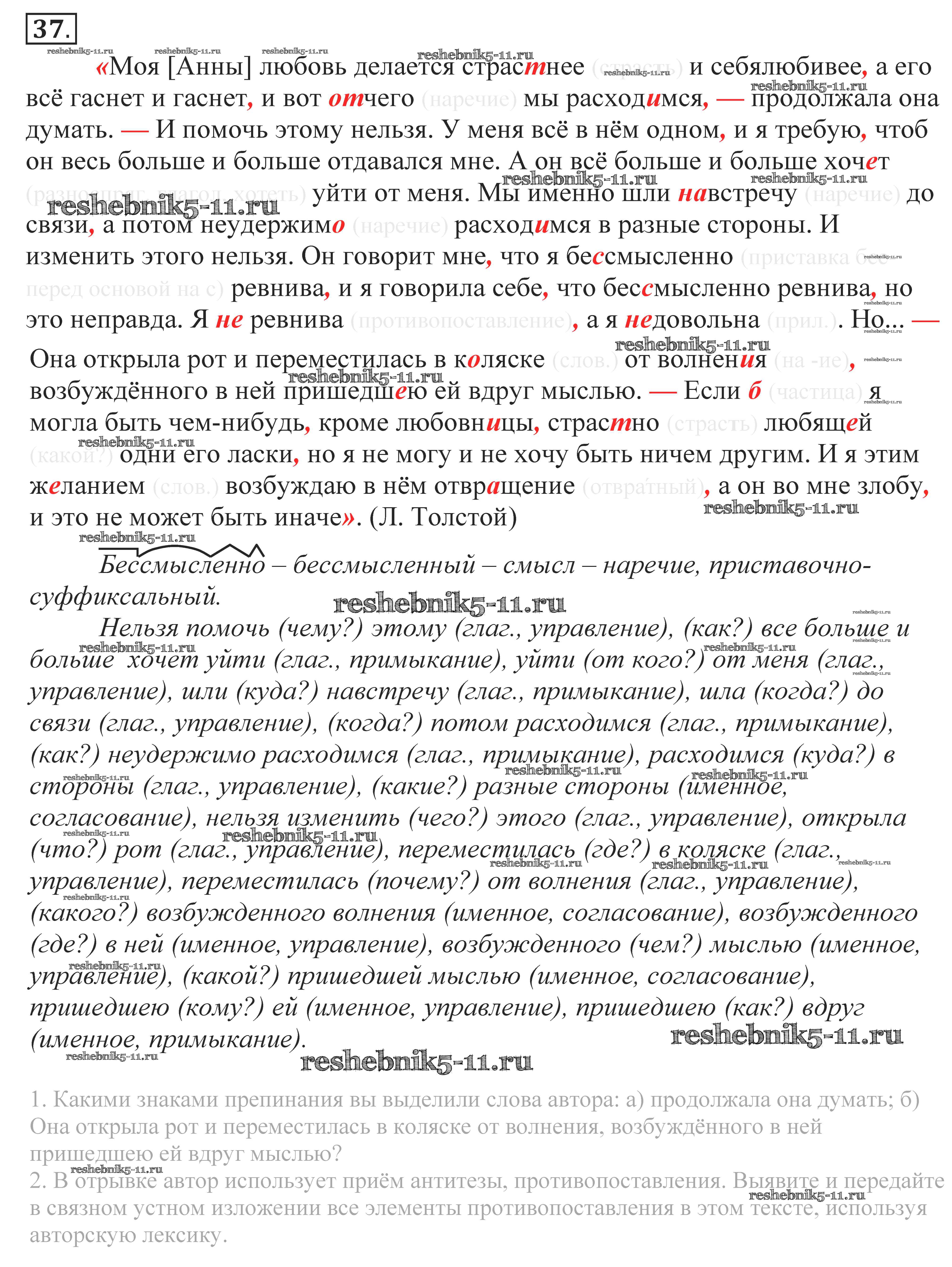 Готовая домашняя работа с ответами по Русскому языку за 10, 11 класс Власенков, Рыбченкова Учебник Базовый уровень Просвещение 2014 - Упражнения 37