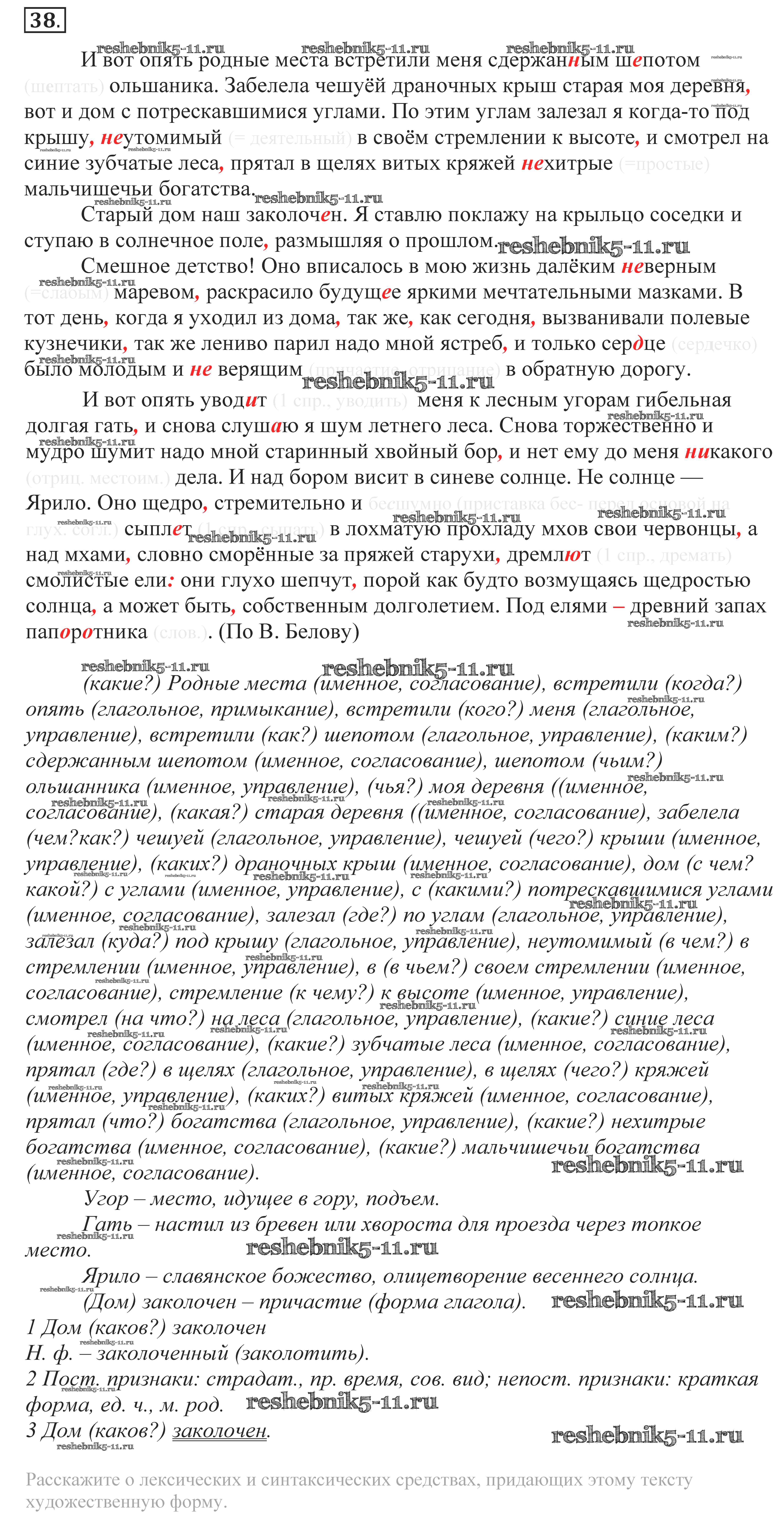 Готовая домашняя работа с ответами по Русскому языку за 10, 11 класс Власенков, Рыбченкова Учебник Базовый уровень Просвещение 2014 - Упражнения 38
