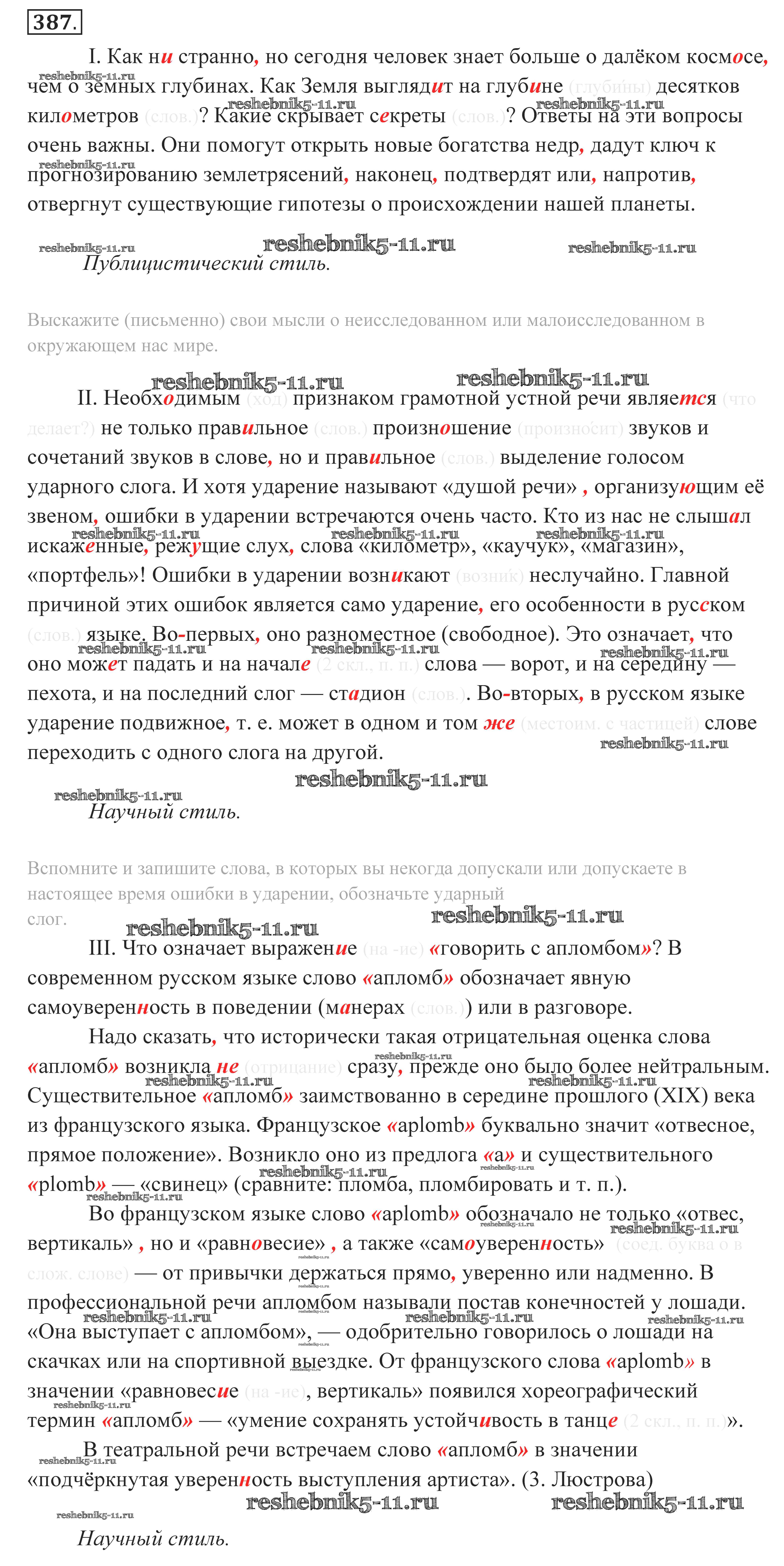 Готовая домашняя работа с ответами по Русскому языку за 10, 11 класс Власенков, Рыбченкова Учебник Базовый уровень Просвещение 2014 - Упражнения 387