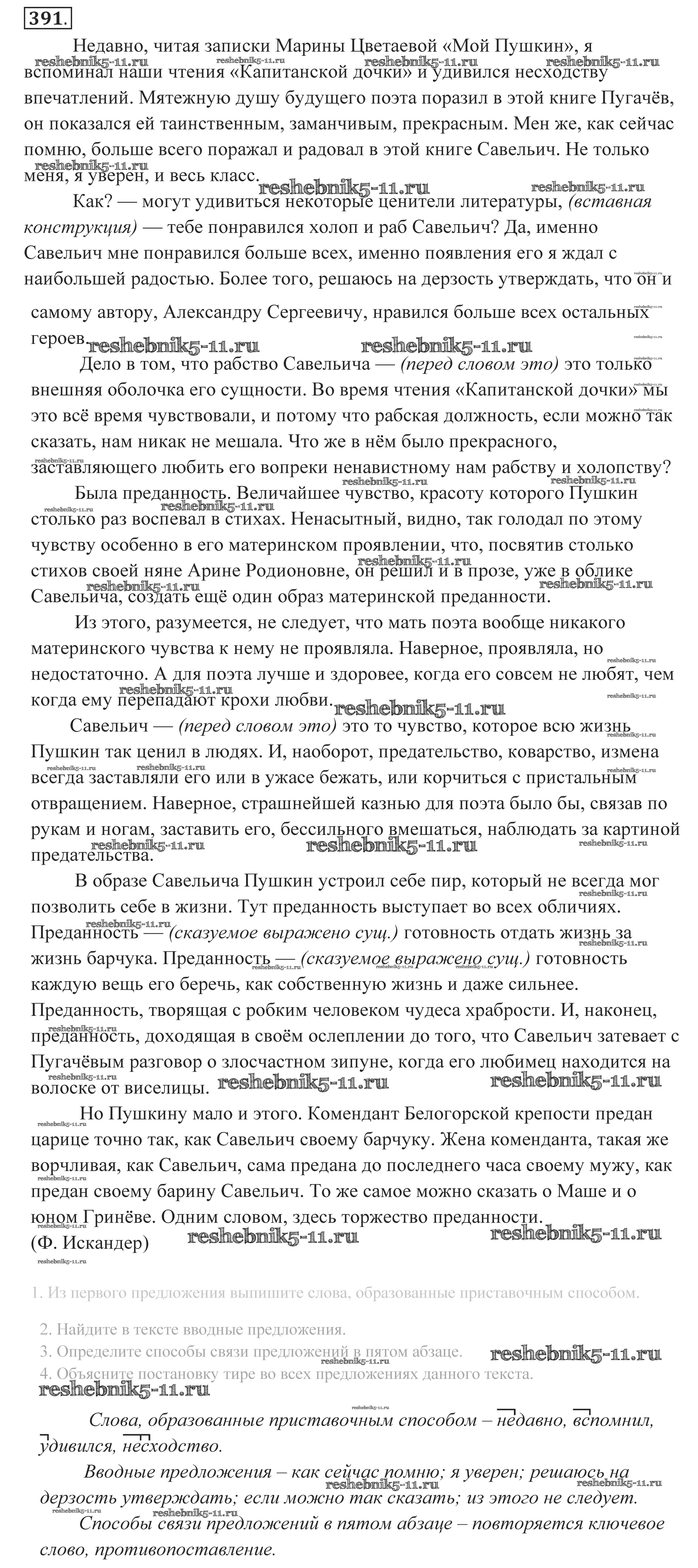 Готовая домашняя работа с ответами по Русскому языку за 10, 11 класс Власенков, Рыбченкова Учебник Базовый уровень Просвещение 2014 - Упражнения 391