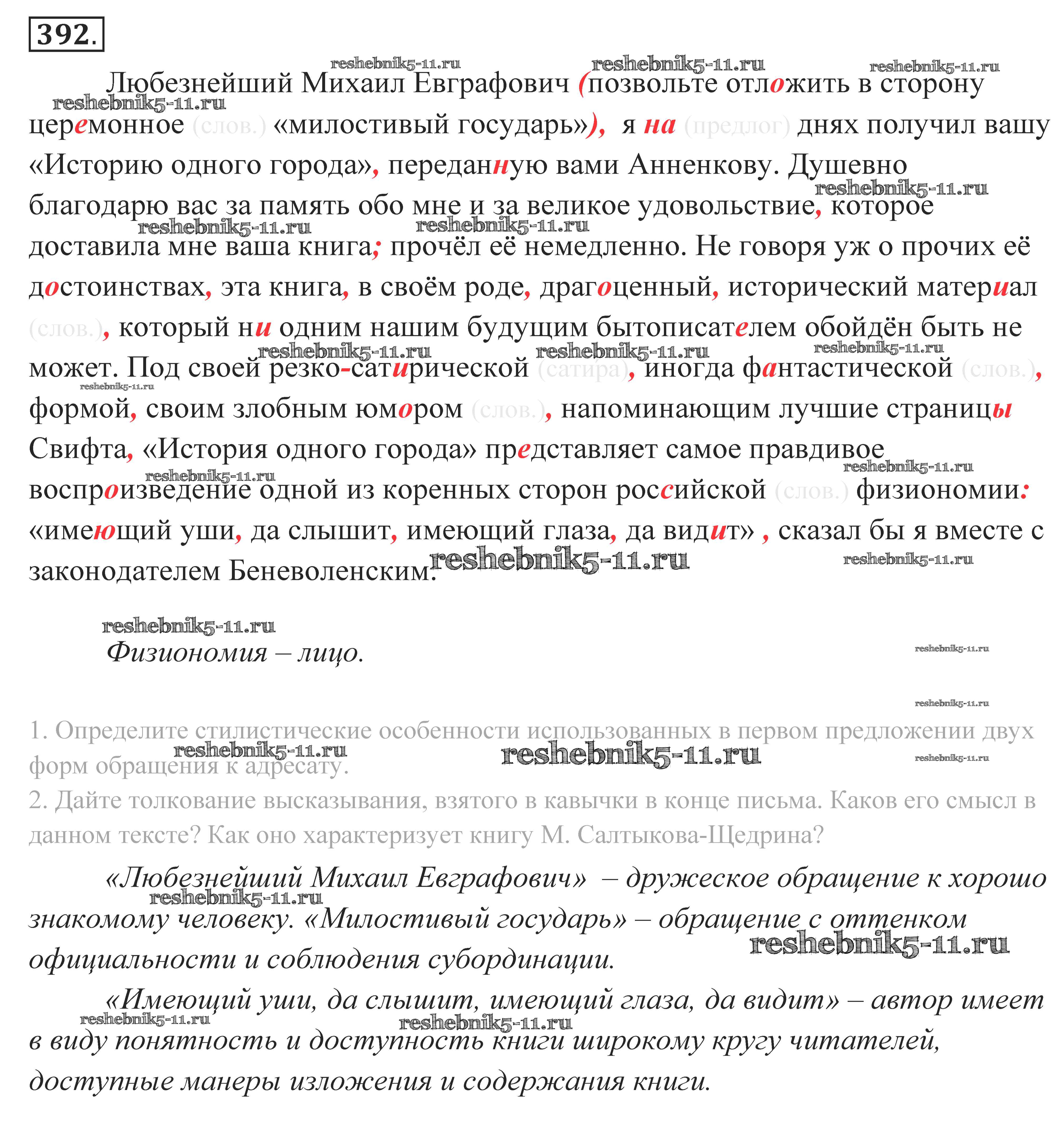 Готовая домашняя работа с ответами по Русскому языку за 10, 11 класс Власенков, Рыбченкова Учебник Базовый уровень Просвещение 2014 - Упражнения 392