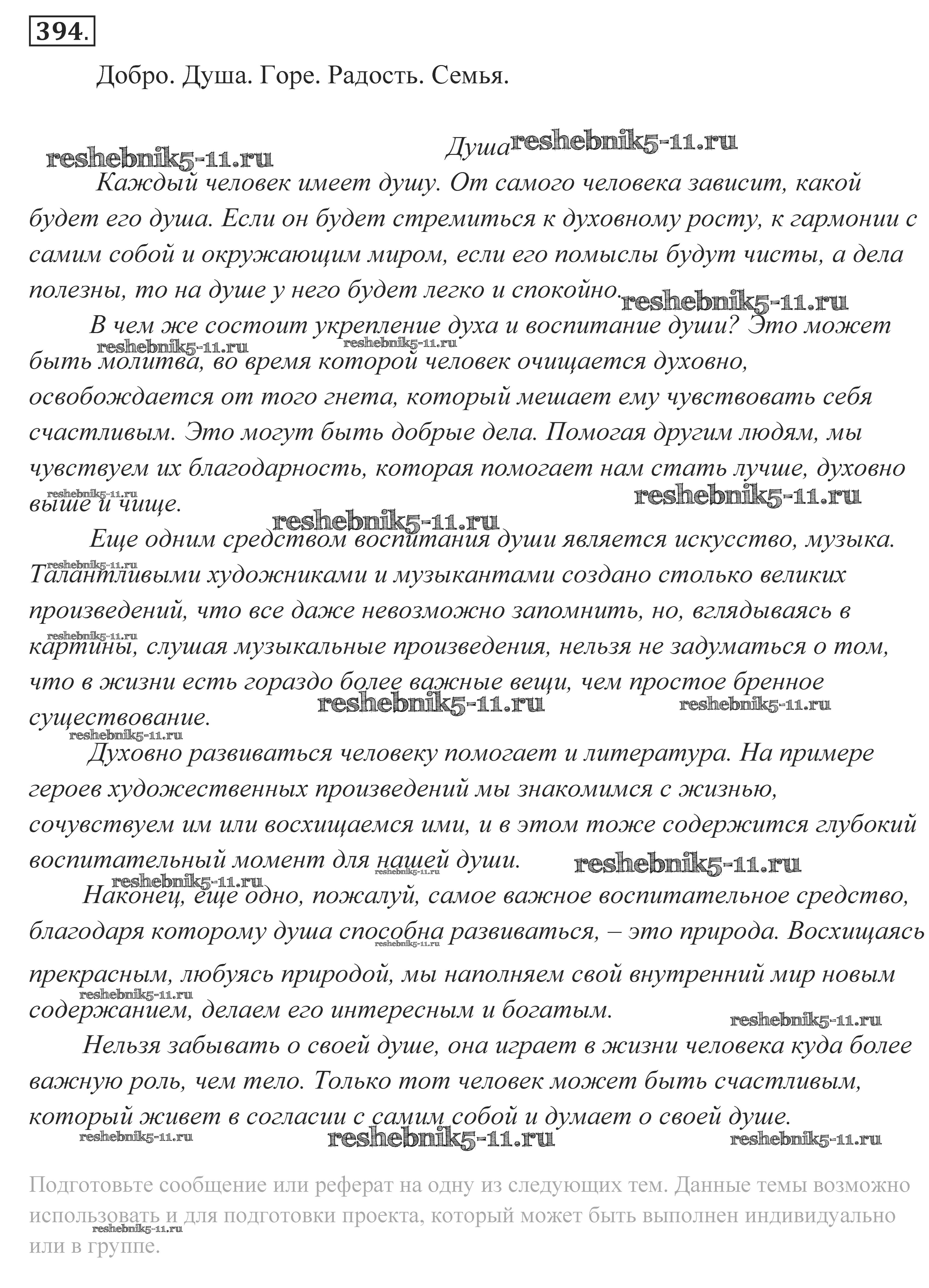 Готовая домашняя работа с ответами по Русскому языку за 10, 11 класс Власенков, Рыбченкова Учебник Базовый уровень Просвещение 2014 - Упражнения 394