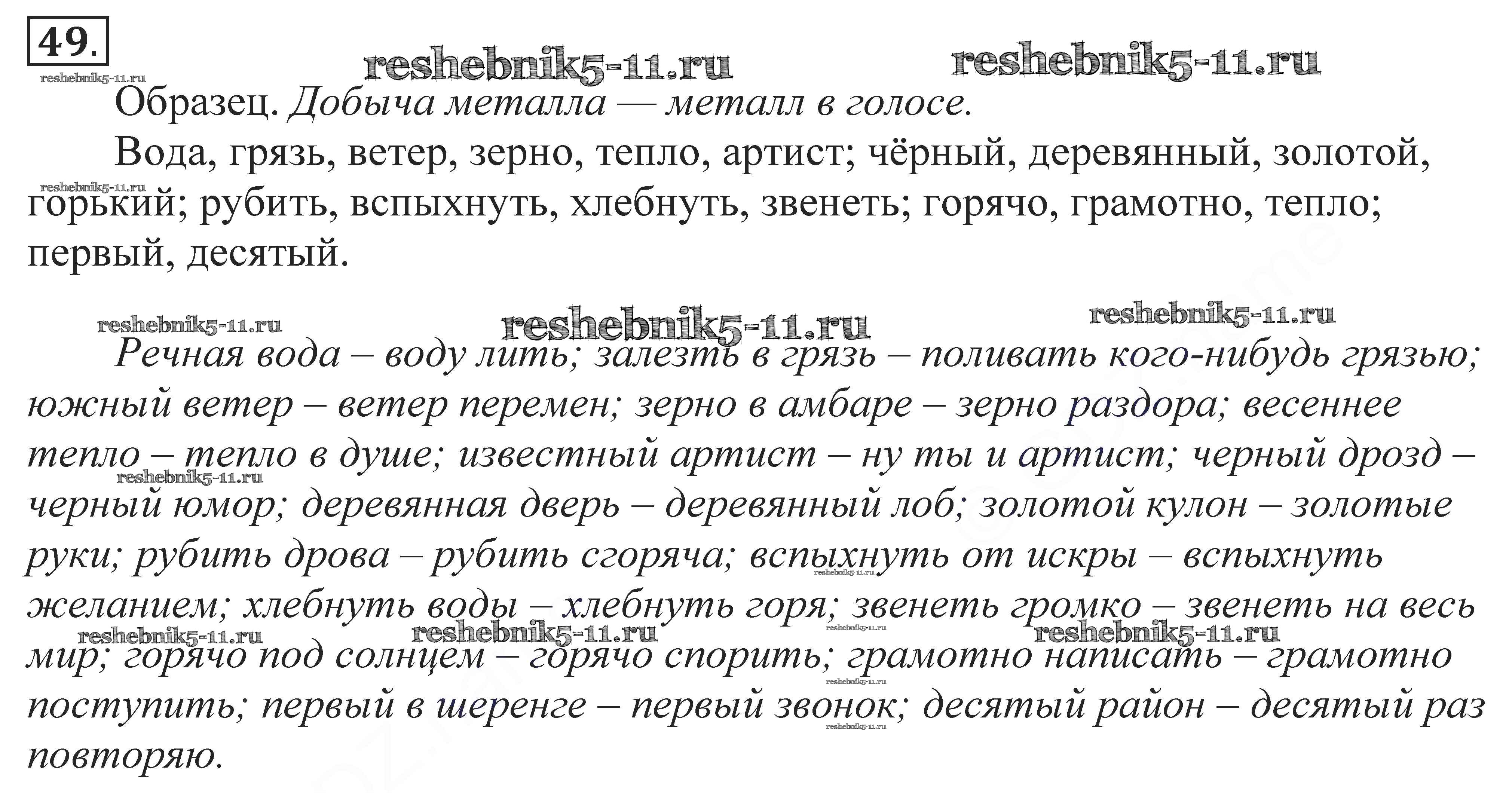 Готовая домашняя работа с ответами по Русскому языку за 10, 11 класс Власенков, Рыбченкова Учебник Базовый уровень Просвещение 2014 - Упражнения 49