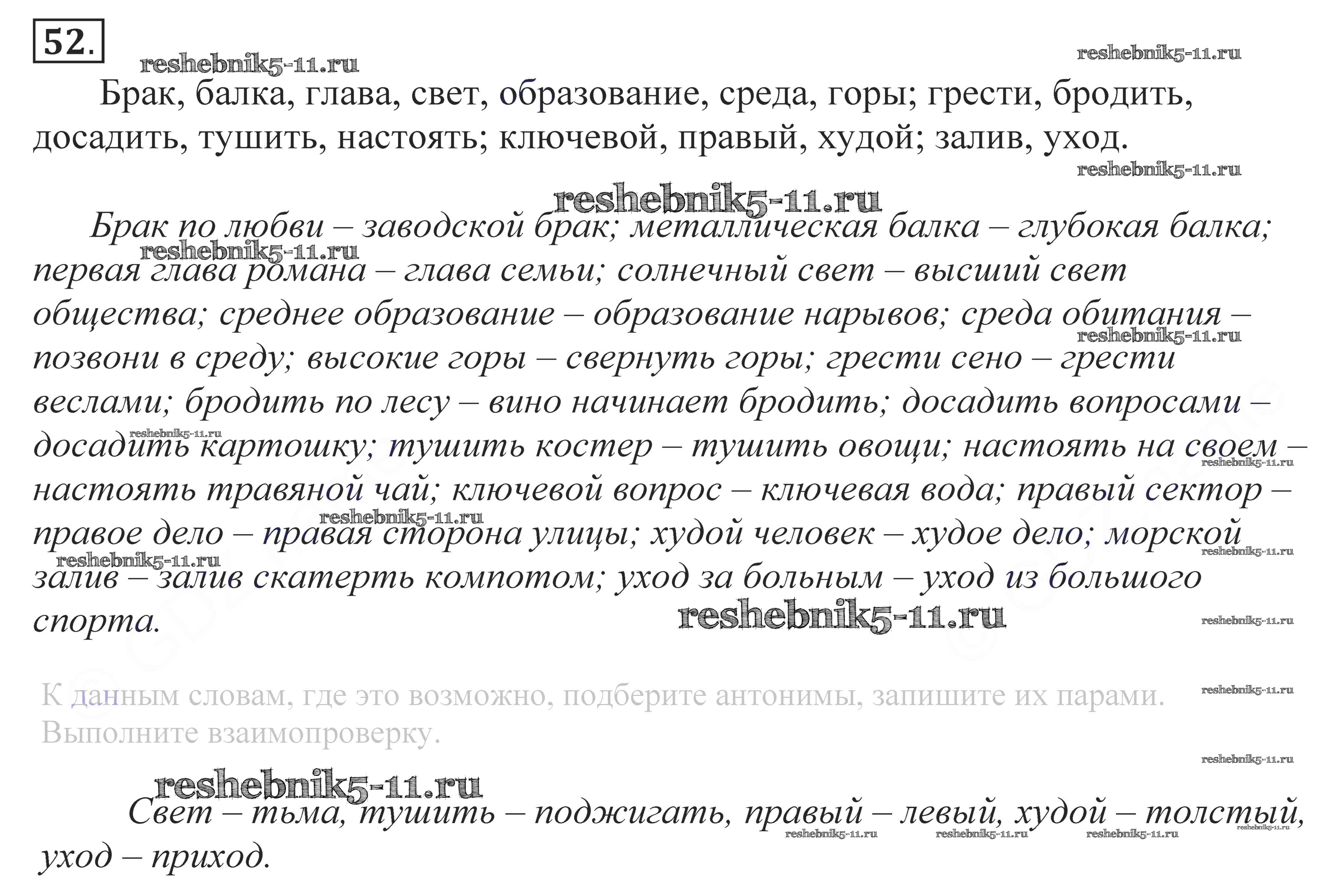 Готовая домашняя работа с ответами по Русскому языку за 10, 11 класс Власенков, Рыбченкова Учебник Базовый уровень Просвещение 2014 - Упражнения 52