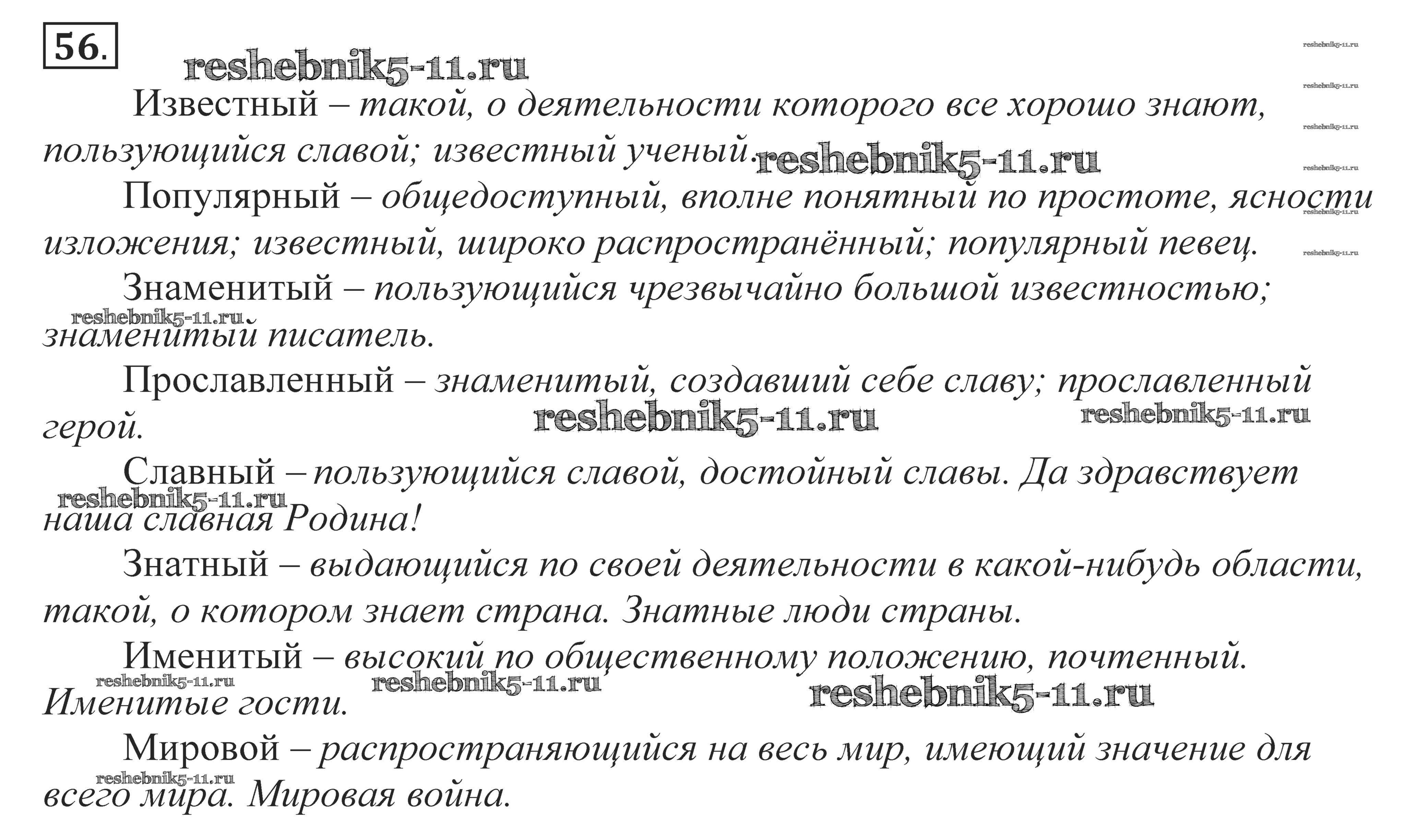 Готовая домашняя работа с ответами по Русскому языку за 10, 11 класс Власенков, Рыбченкова Учебник Базовый уровень Просвещение 2014 - Упражнения 56