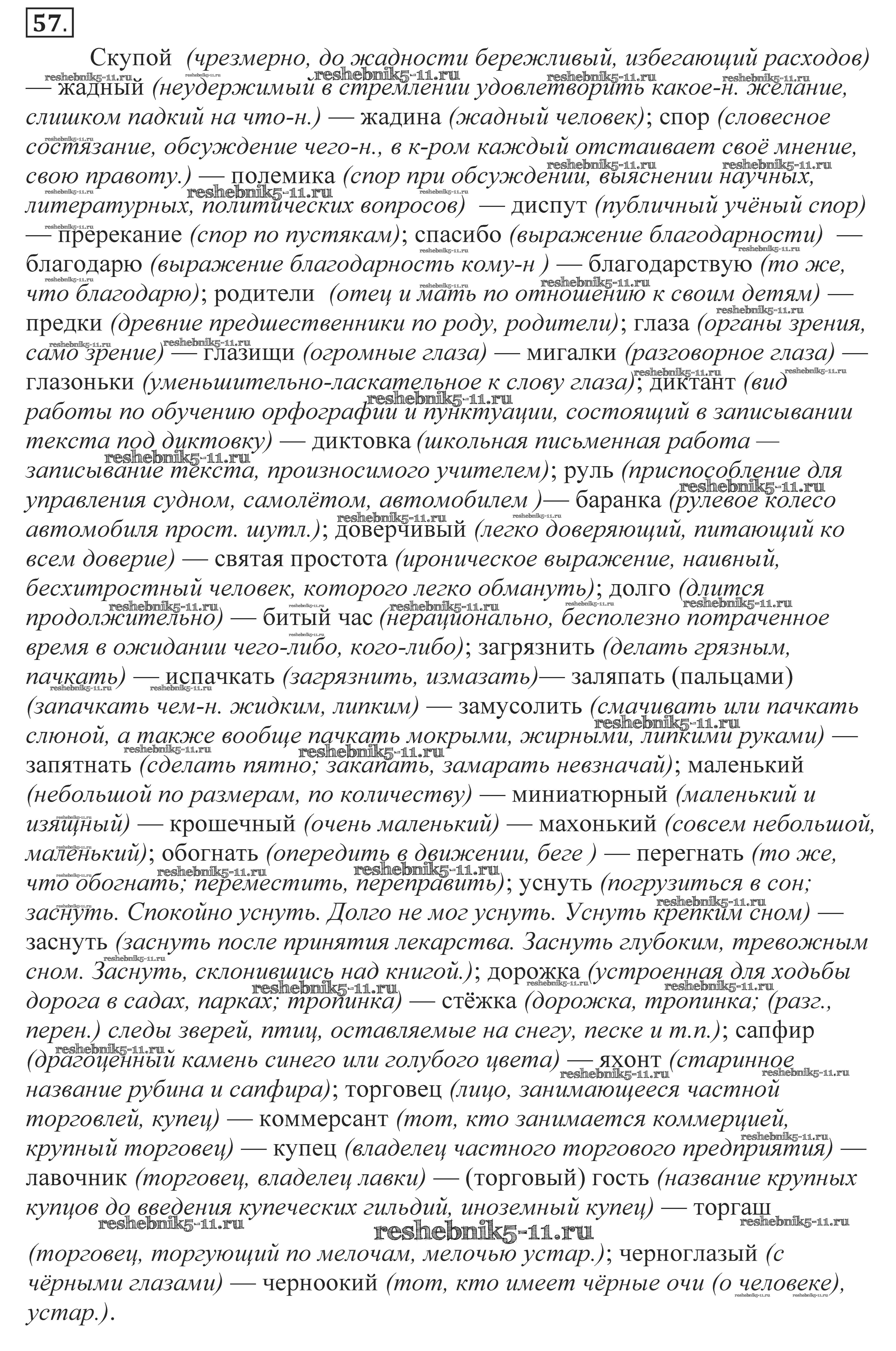Готовая домашняя работа с ответами по Русскому языку за 10, 11 класс Власенков, Рыбченкова Учебник Базовый уровень Просвещение 2014 - Упражнения 57
